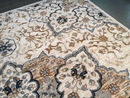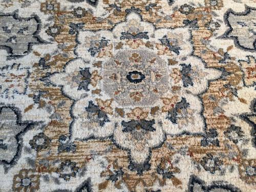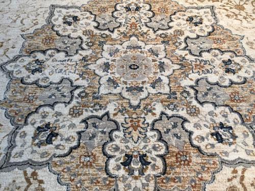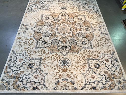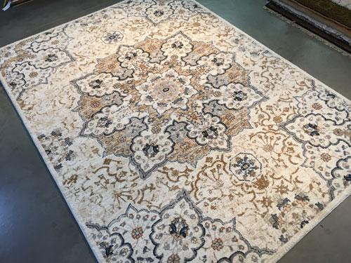 6 Feet 7 Inches X 9 Feet 6 Inches Premium Quality Medallion Persian Design Brand Name Rug, in Ivory, Tan, Blue and Multi Accent Colors, made of Durable and easy to care, Microfiber Pile Power Loomed in Turkey.