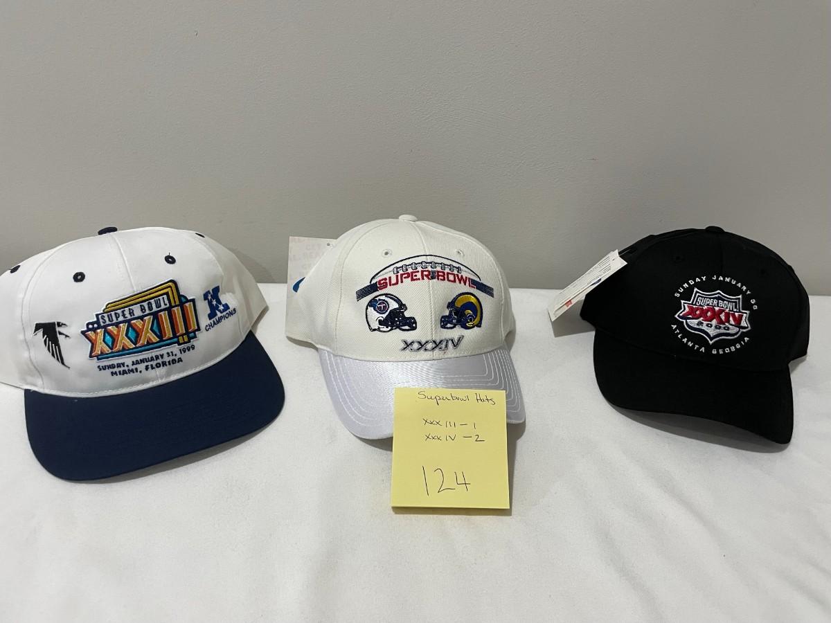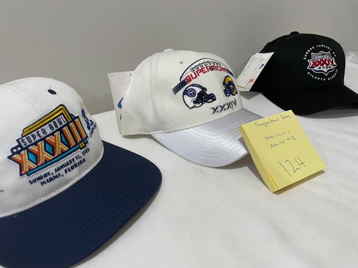 1 XXXIII Superbowl Hat & 2 XXXIV Superbowl Hats - New