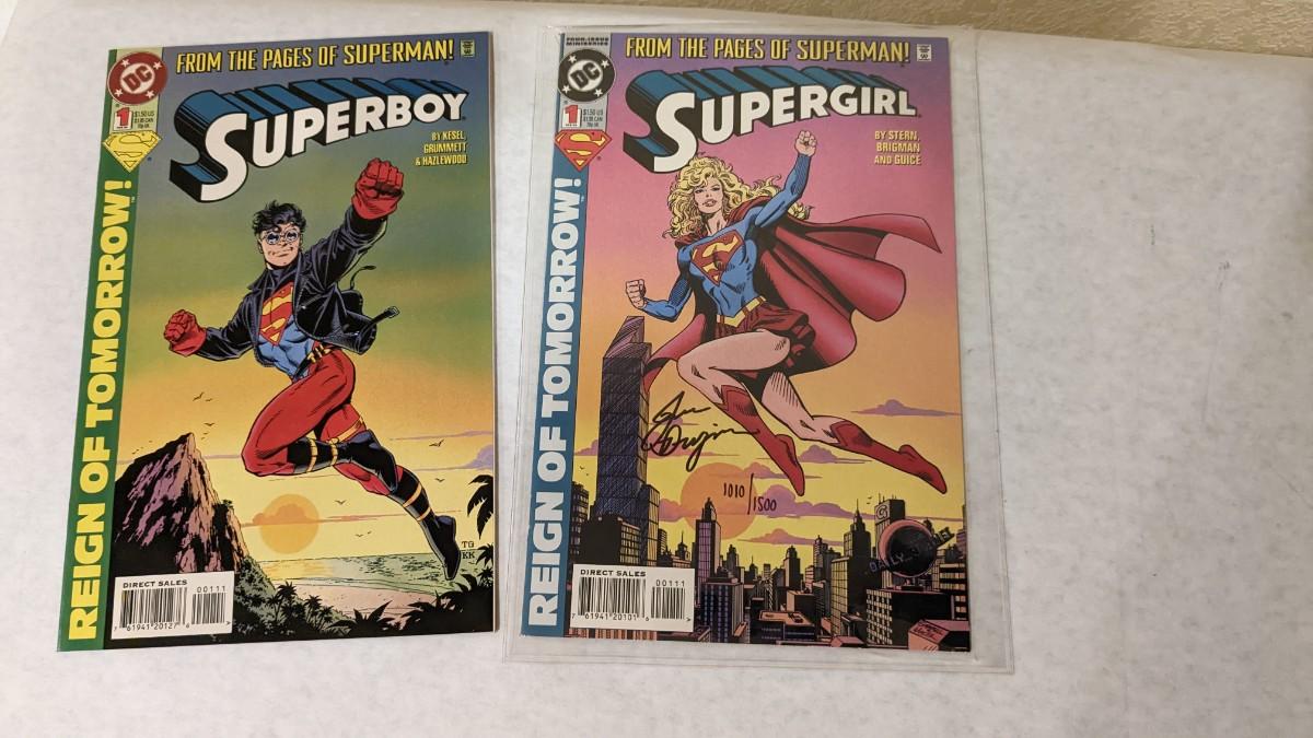 signed Supergirl 1080/1500 with COA in mint condition. Superboy no.1 in mint condition.