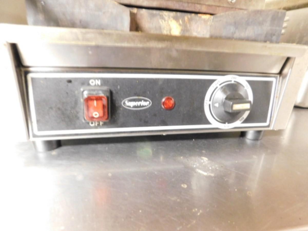 Superior Brand Commercial Kitchen Sandwich Press. Turned on and got hot. Bid accordingly. Needs to be cleaned. Expect some wear or scratches to finish. Shipping option available via freight or local mover at Buyer's expense. Buyer must have all shipping scheduled within the stated dates and times of pickup. Recommended local mover is Beaty Bros. Moving 828-201-2982