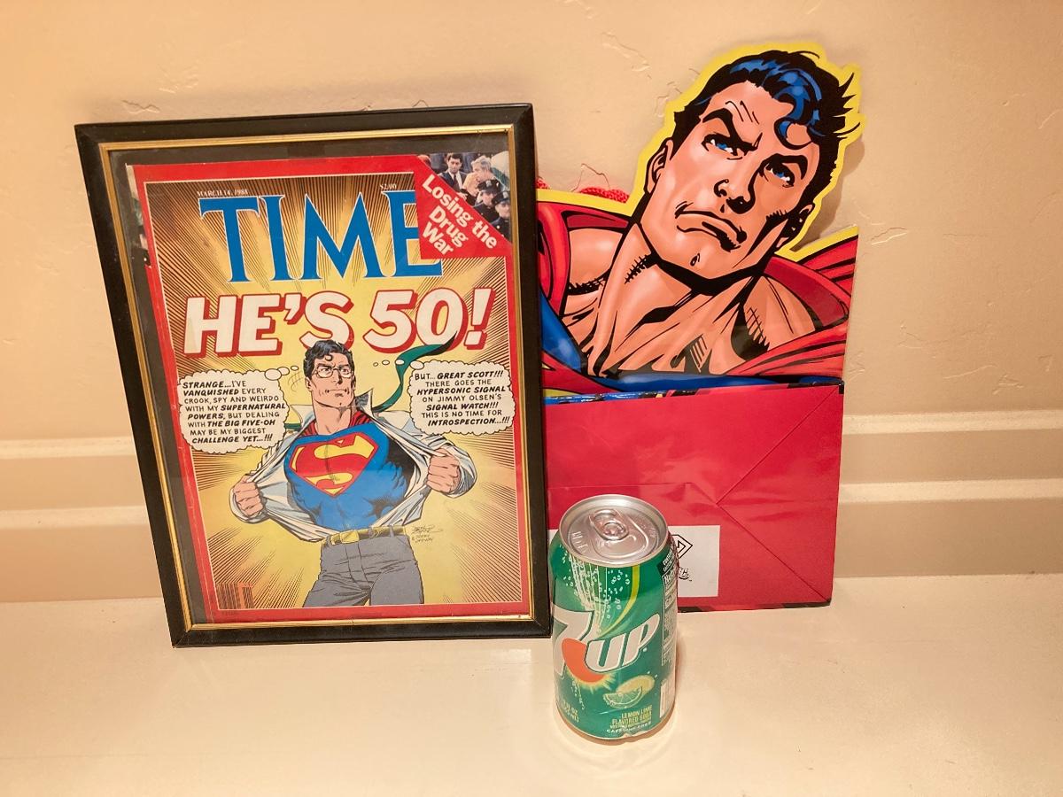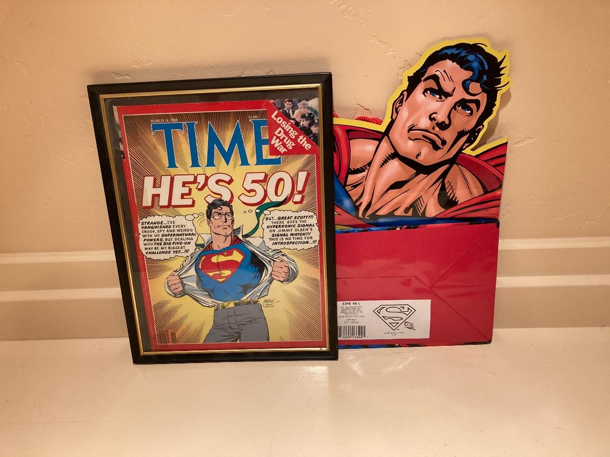 #288 SUPERMAN: Framed Time Cover and Gift Bag Lot of 2