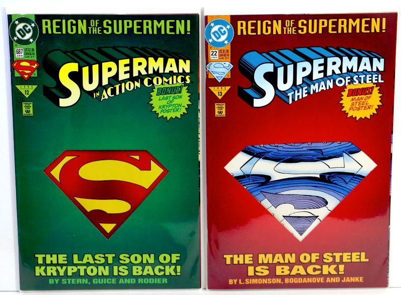 SUPERMAN Reign Of The Supermen COMIC BOOKS SET - DIE CUT COVERS 1993 DC Comics