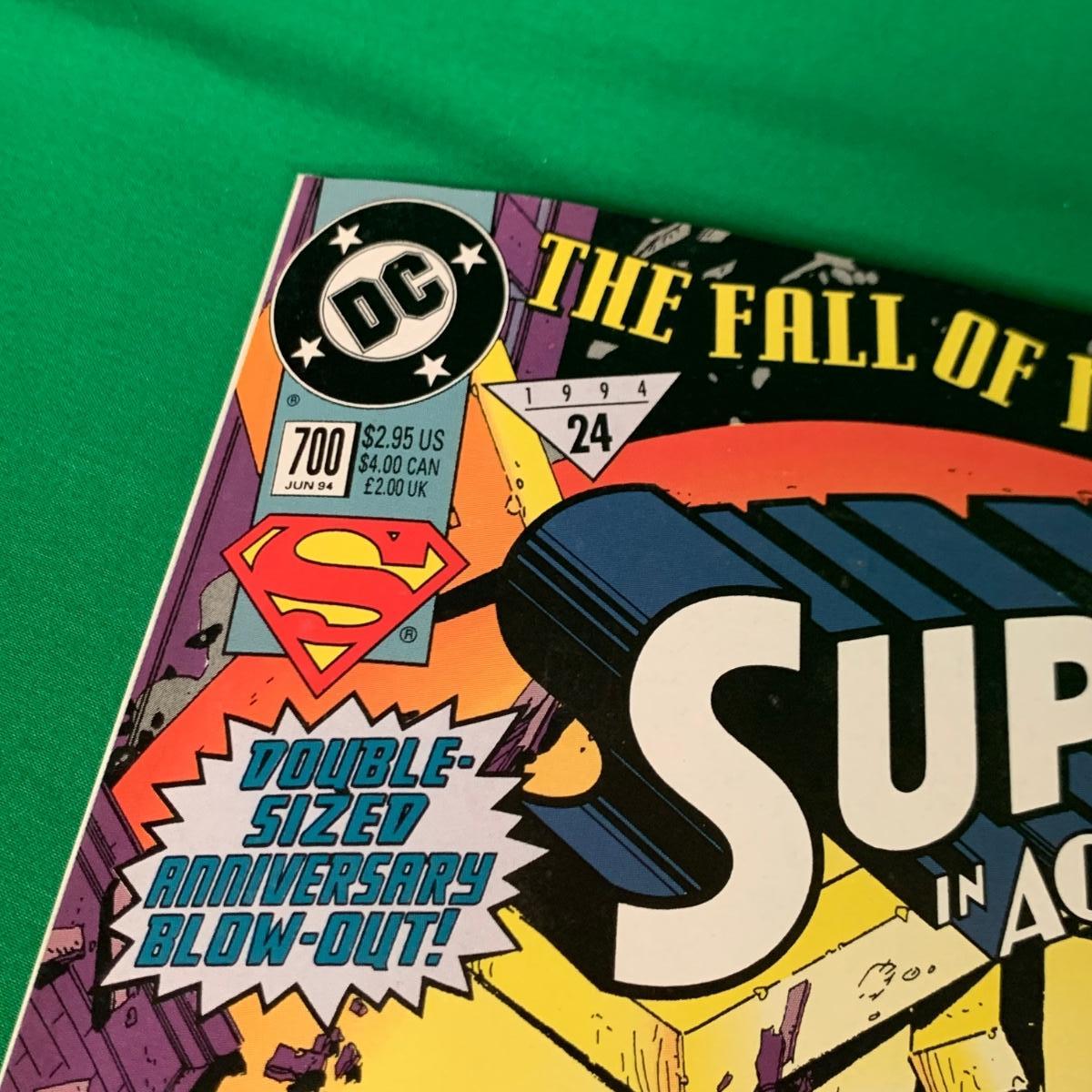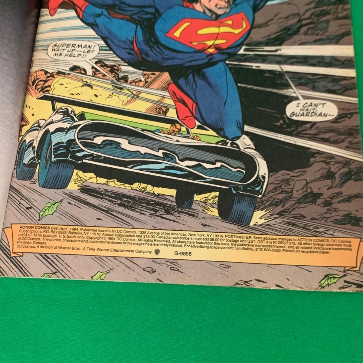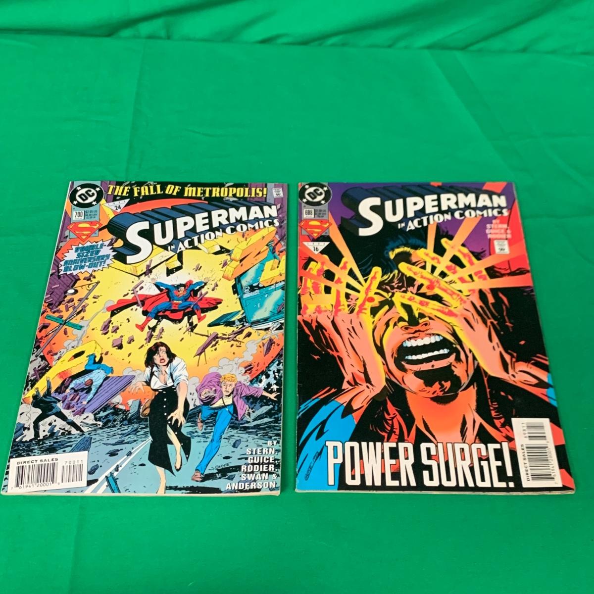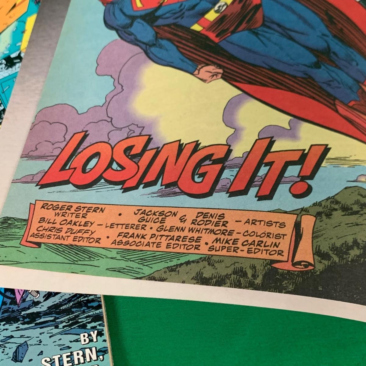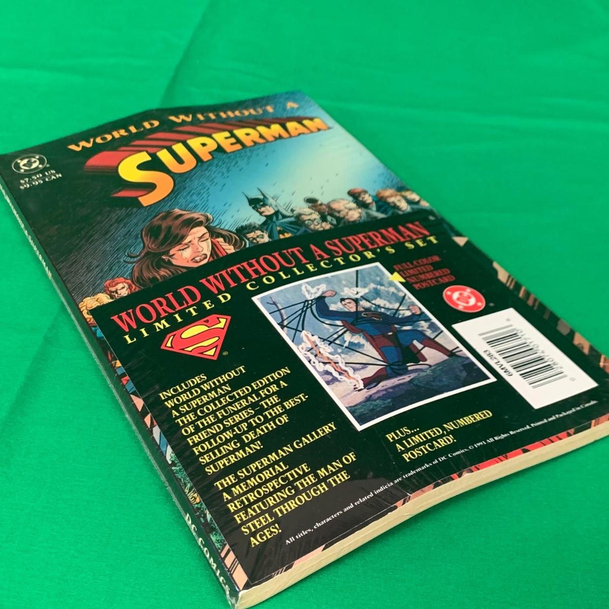 Superman themed lot including hardcover book “Superman: The Complete History”, with five other Superman books and comics, plus a large giclee fine art print of art done by Al Ramirez. Print is 19” x 30”H and has original signature. There are some small blemishes on the white border around the art. “The Return of Superman” is autographed on the front cover. It appears to be the signature of Jackson “Butch” Guice.