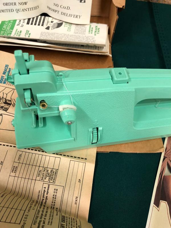 In turquoise here is a SUPERSTITCH sewing machine...as seen on tv product...complete..new condition..in the box with instructions...as shown...