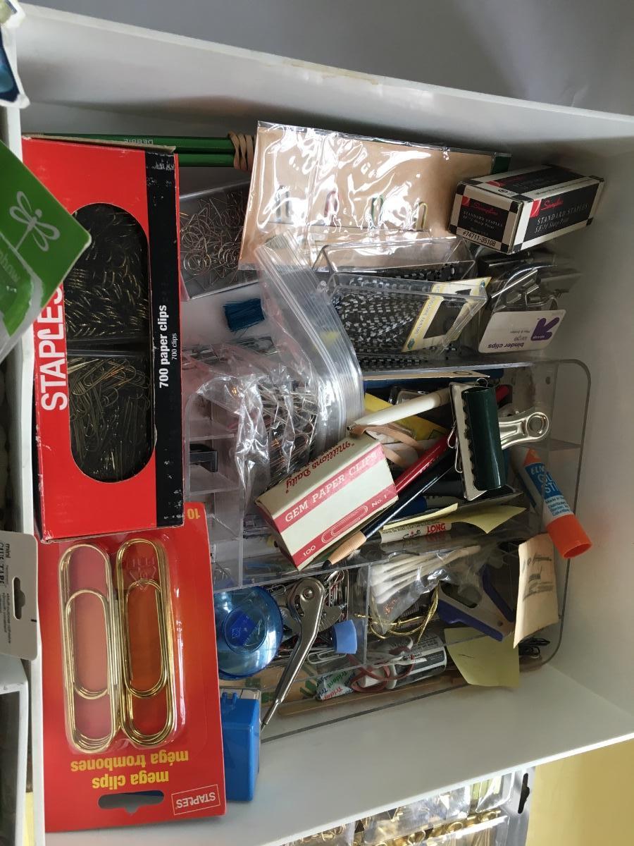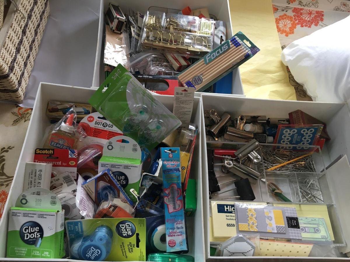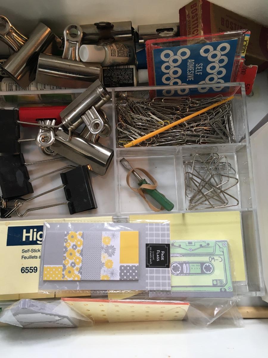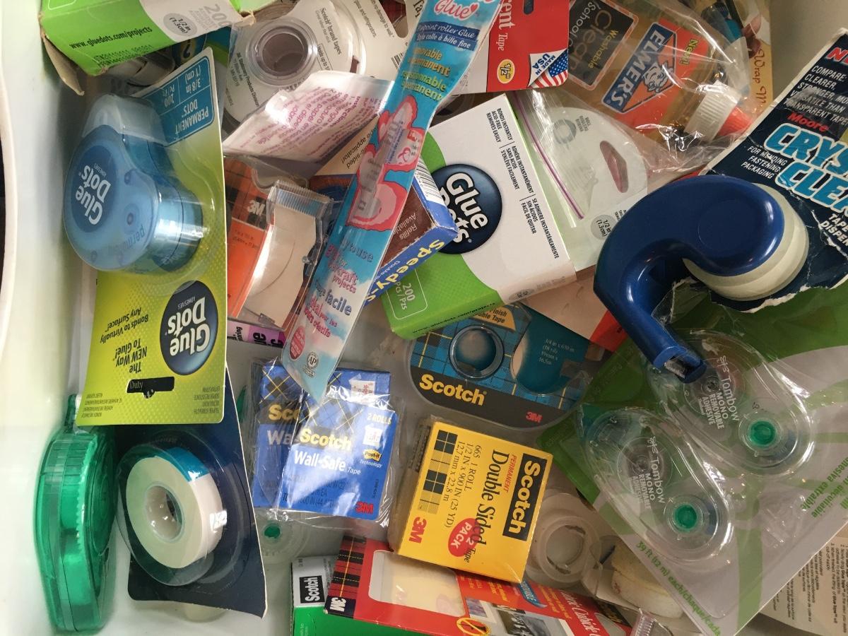 Extra large bundle of office supplies from multiple tape dispensers, clips, paper clips, post its, pencils, and whatever else we can find to throw in that will set up your office for years to come! (does NOT come with containers in photos)