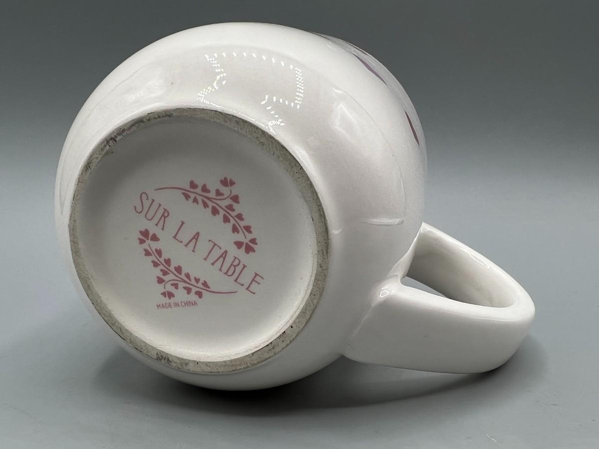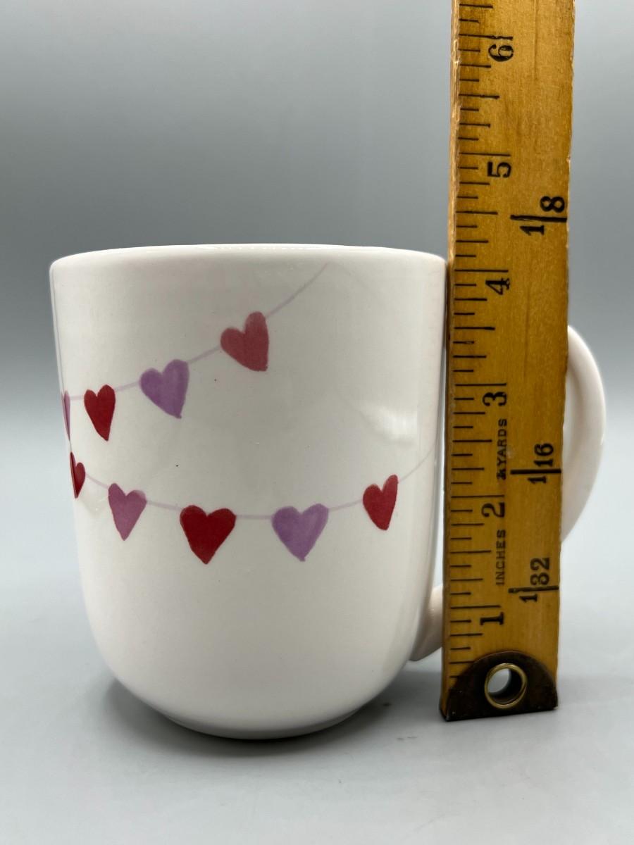 Sur La Table Pull on My Heartstrings Cute Heart Ceramic Coffee Mug, there are no significant cracks or chips to the coffee mug and is in good useable condition. Check pictures for more details and for sizing.