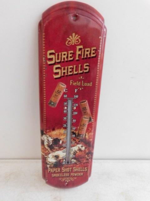 Sure Fire Shells Tin Metal Thermometer 16"x5"