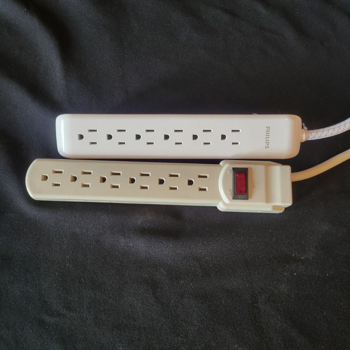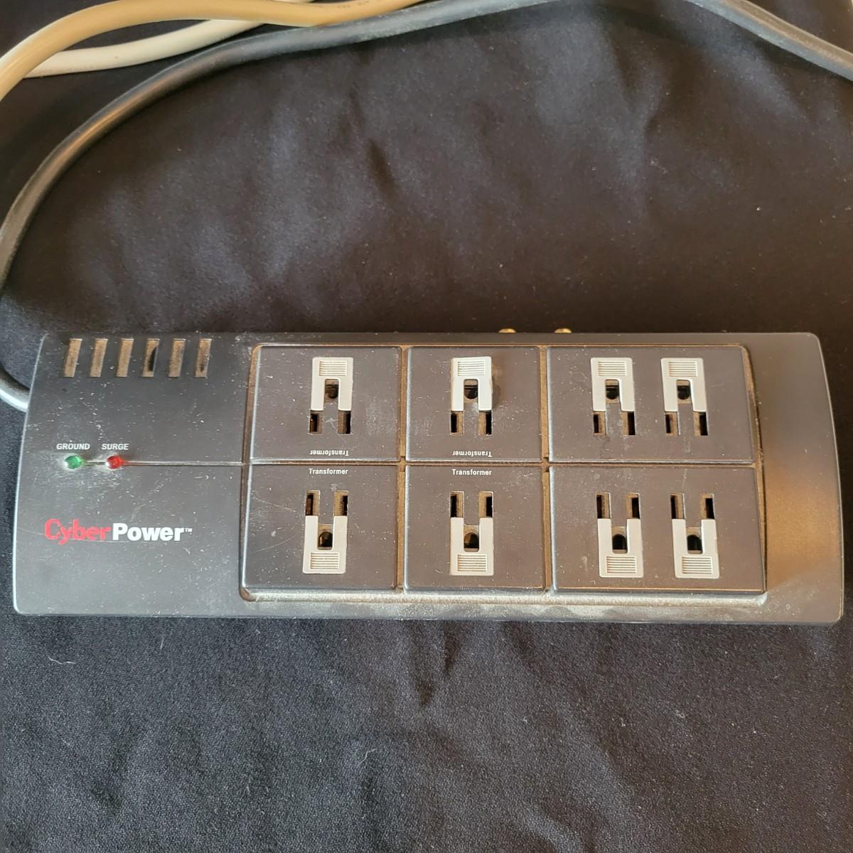 A collection of four surge protectors and a 15' power cord. Shipping available