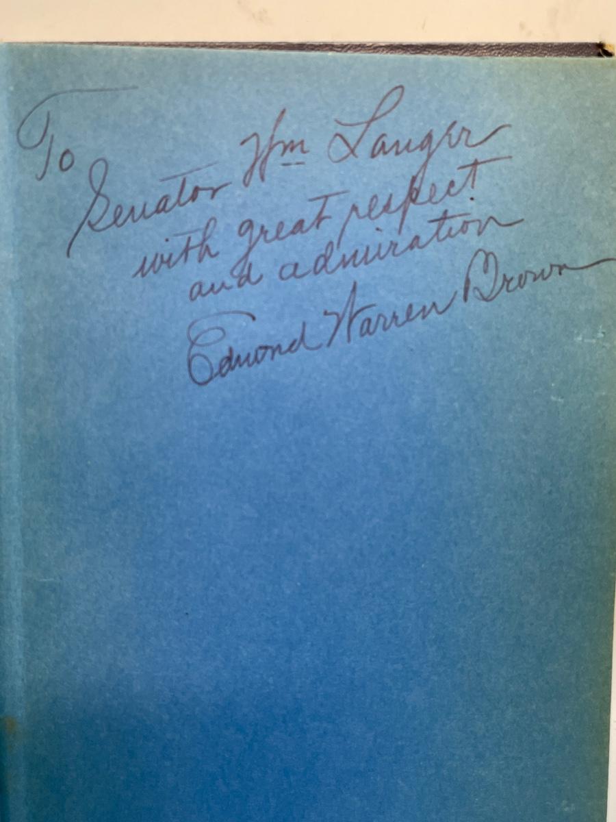 Inscribed by author, to William Langer, North Dakota, senator.