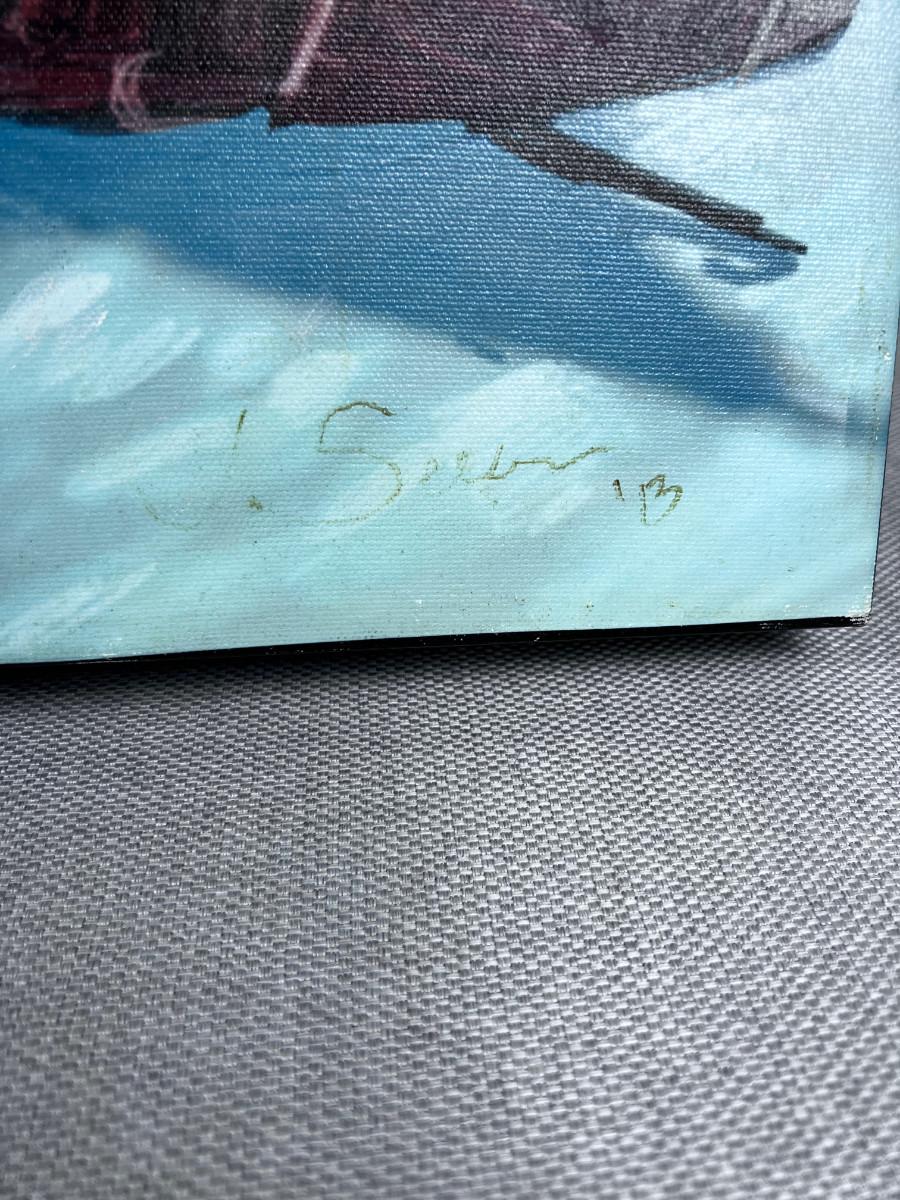 Print. Fair Condition Couple of areas on the Canvas that are damaged Measures 39" x23"