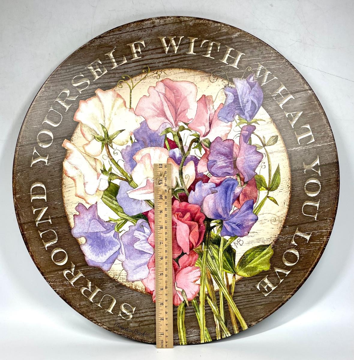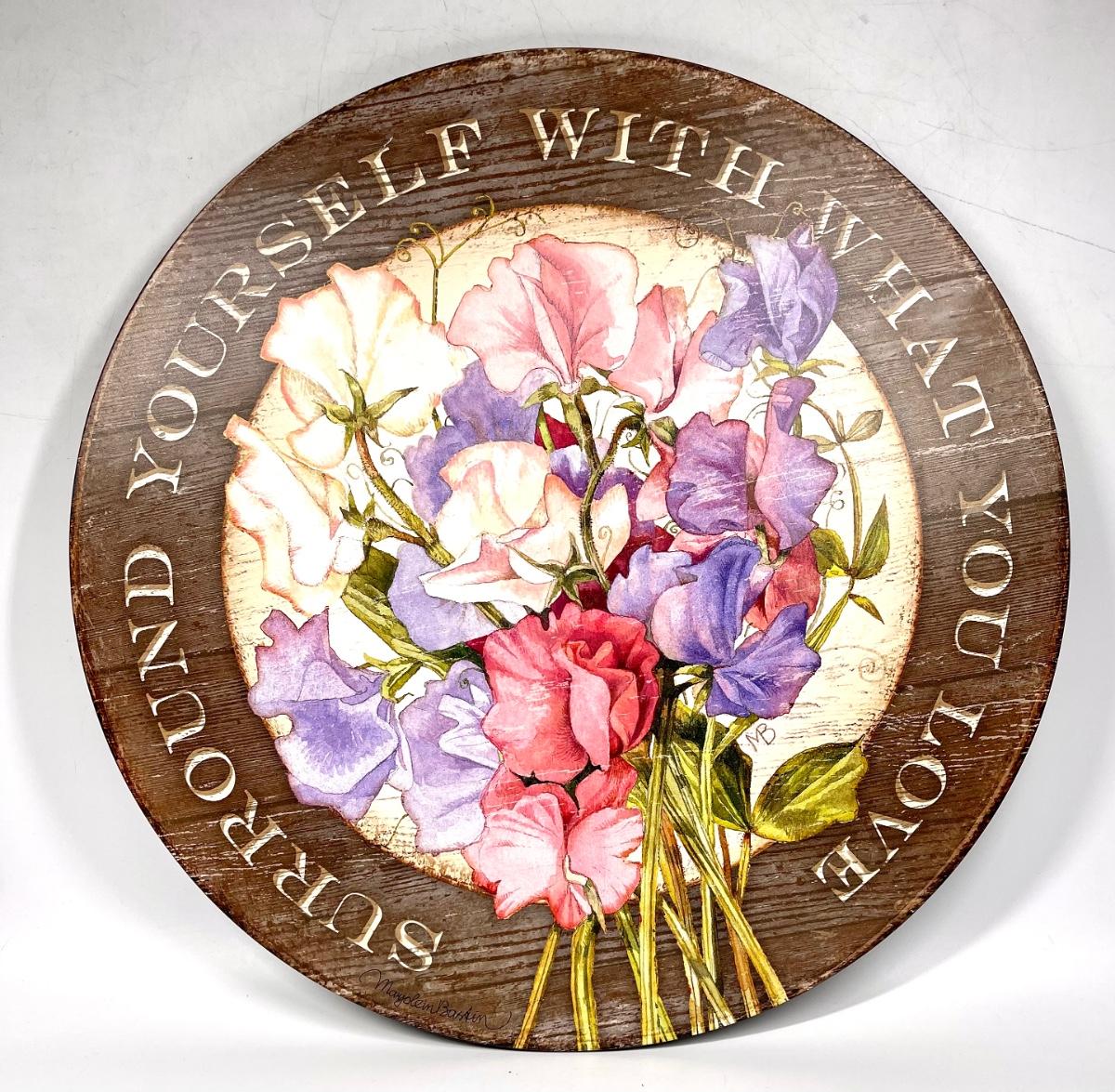 “Surround Yourself with What You Love” Wood Painted Flower sign 21” round