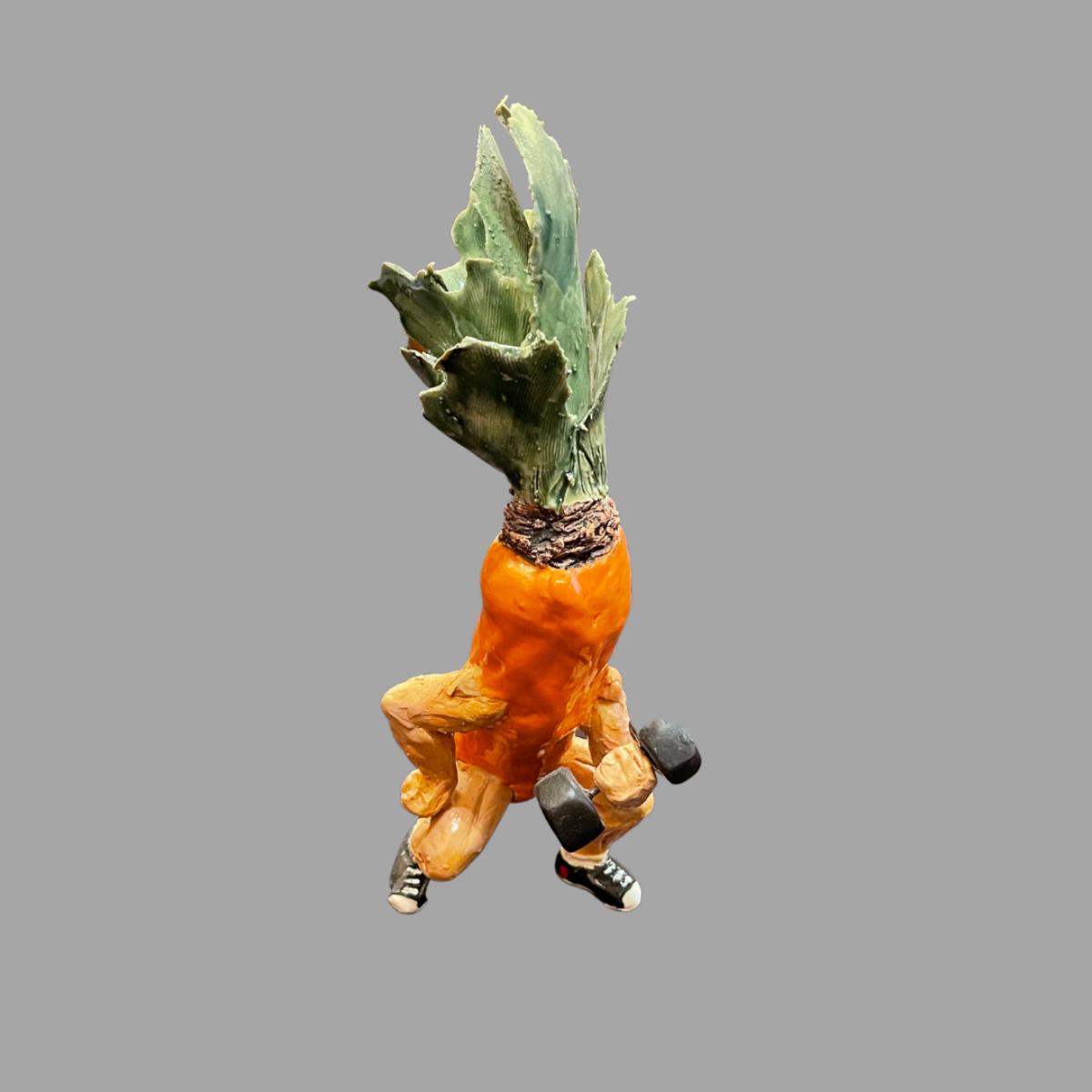 Susan Bergman earned her Master’s degree in American Literature from Tulane, but all she really wanted to do was make things out of clay. Her work can be seen and purchased in NOMA museum shop. This particular collection mixes vegetables with animals and humans. All one of a kind pieces.
