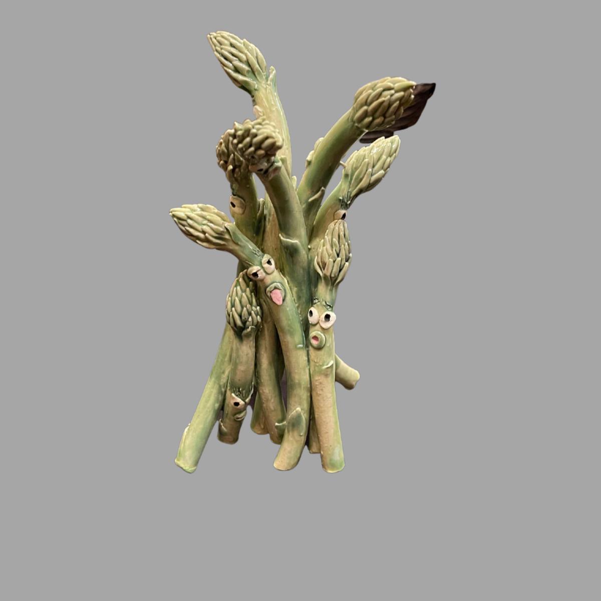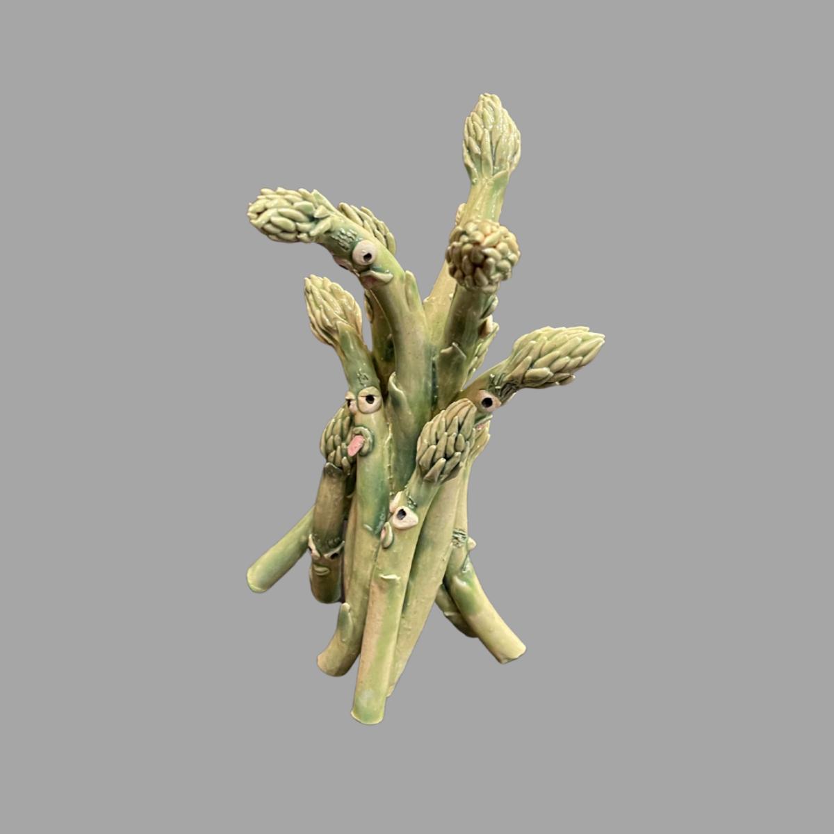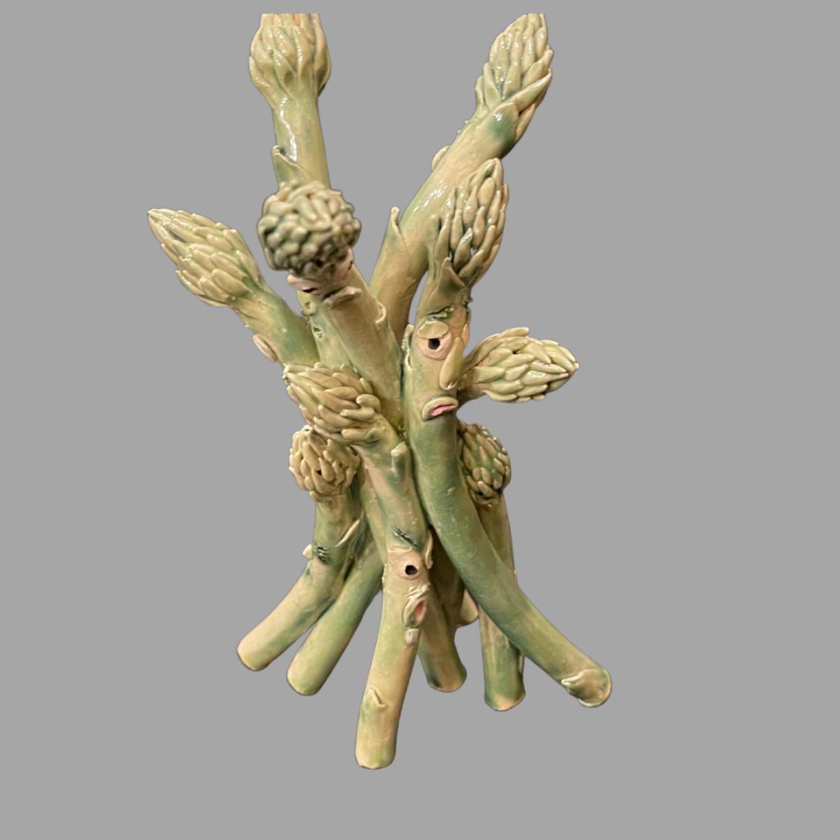 Susan Bergman earned her Master’s degree in American Literature from Tulane, but all she really wanted to do was make things out of clay. Her work can be seen and purchased in NOMA museum shop. This particular collection mixes vegetables with animals and humans. All one of a kind pieces.