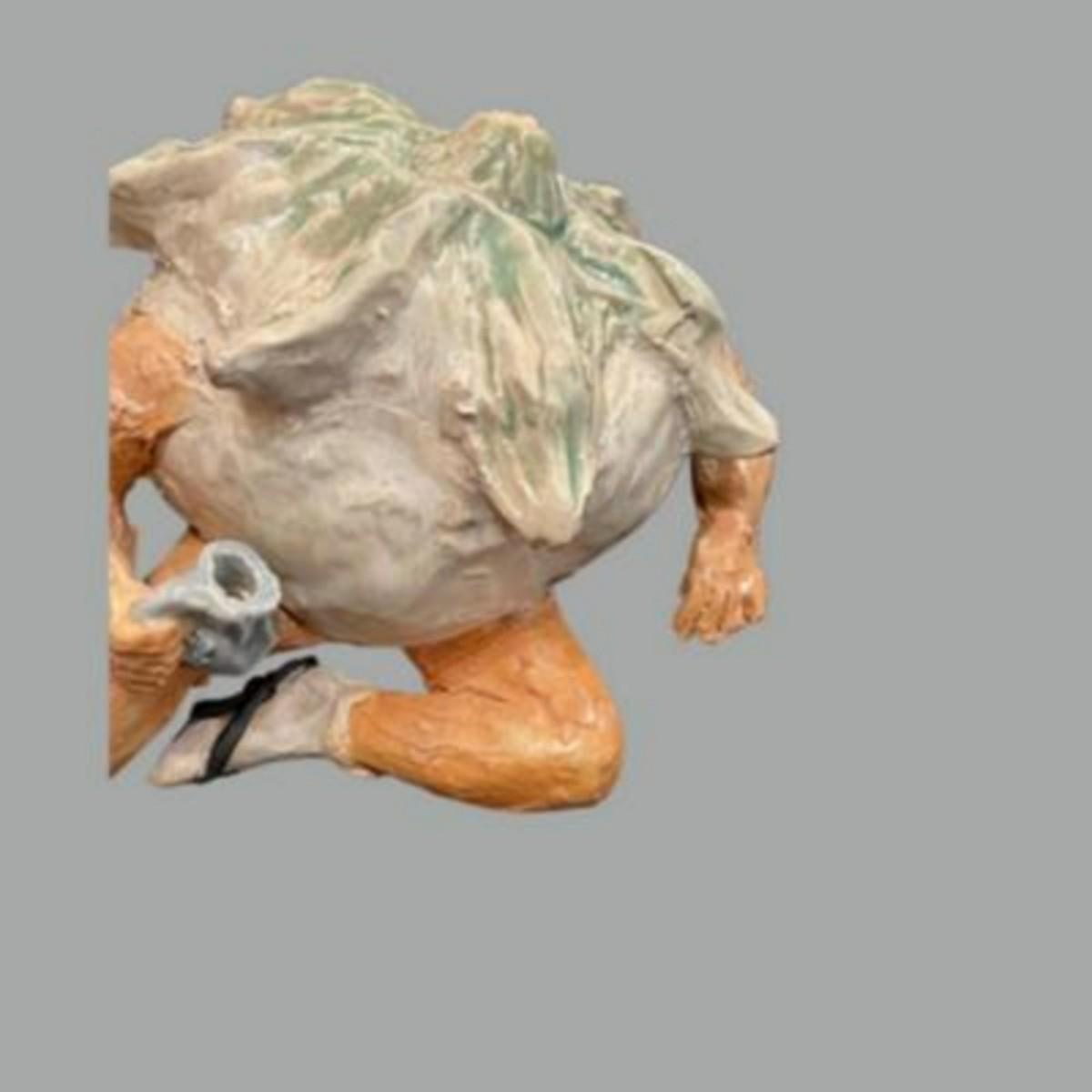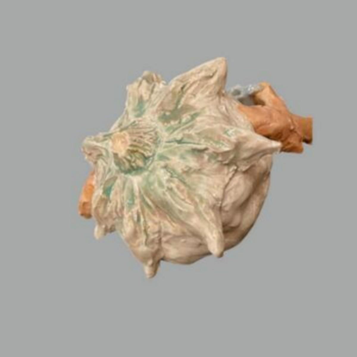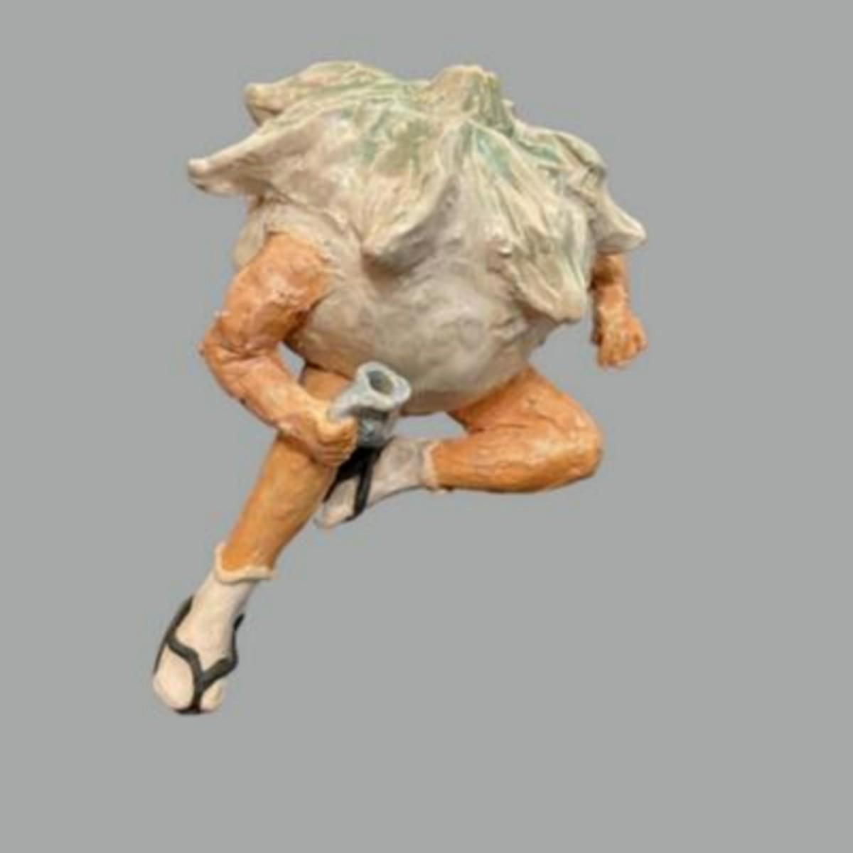 Susan Bergman earned her Master’s degree in American Literature from Tulane, but all she really wanted to do was make things out of clay. Her work can be seen and purchased in NOMA museum shop. This particular collection mixes vegetables with animals and humans. All one of a kind pieces. Her materials are Sgraffito, colored slips, transfers, and paper resist patterns create depth and texture on handbuilt surfaces. Stoneware and mid-range terra cotta primarily built with slabs or coils.
