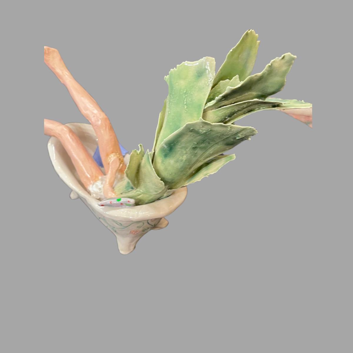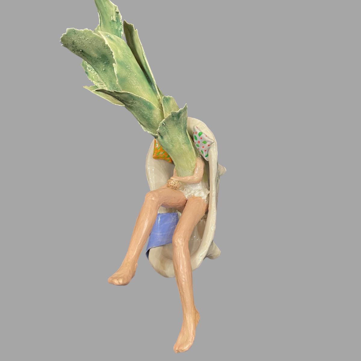 Susan Bergman earned her Master’s degree in American Literature from Tulane, but all she really wanted to do was make things out of clay. Her work can be seen and purchased in NOMA museum shop. This particular collection mixes vegetables with animals and humans. All one of a kind pieces.