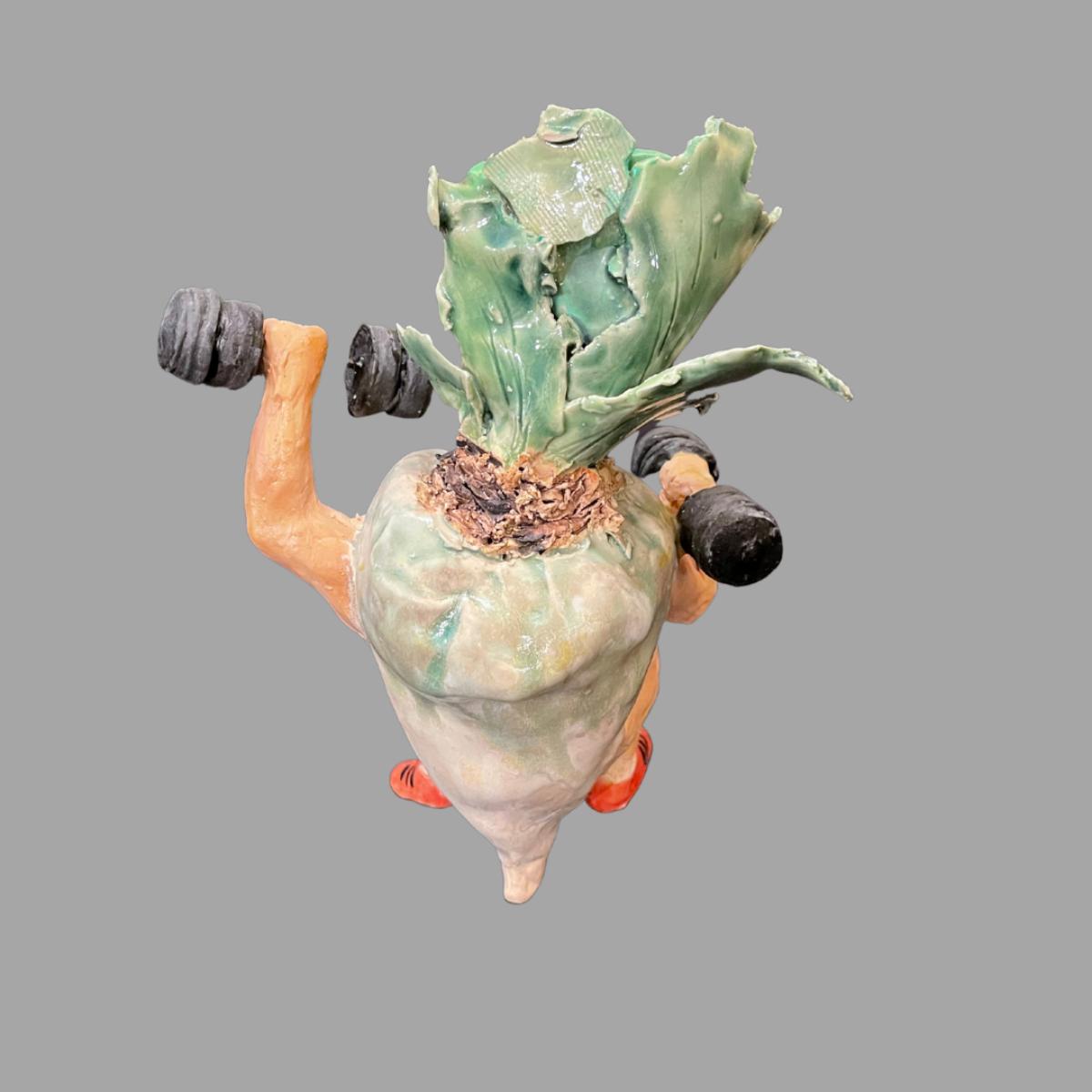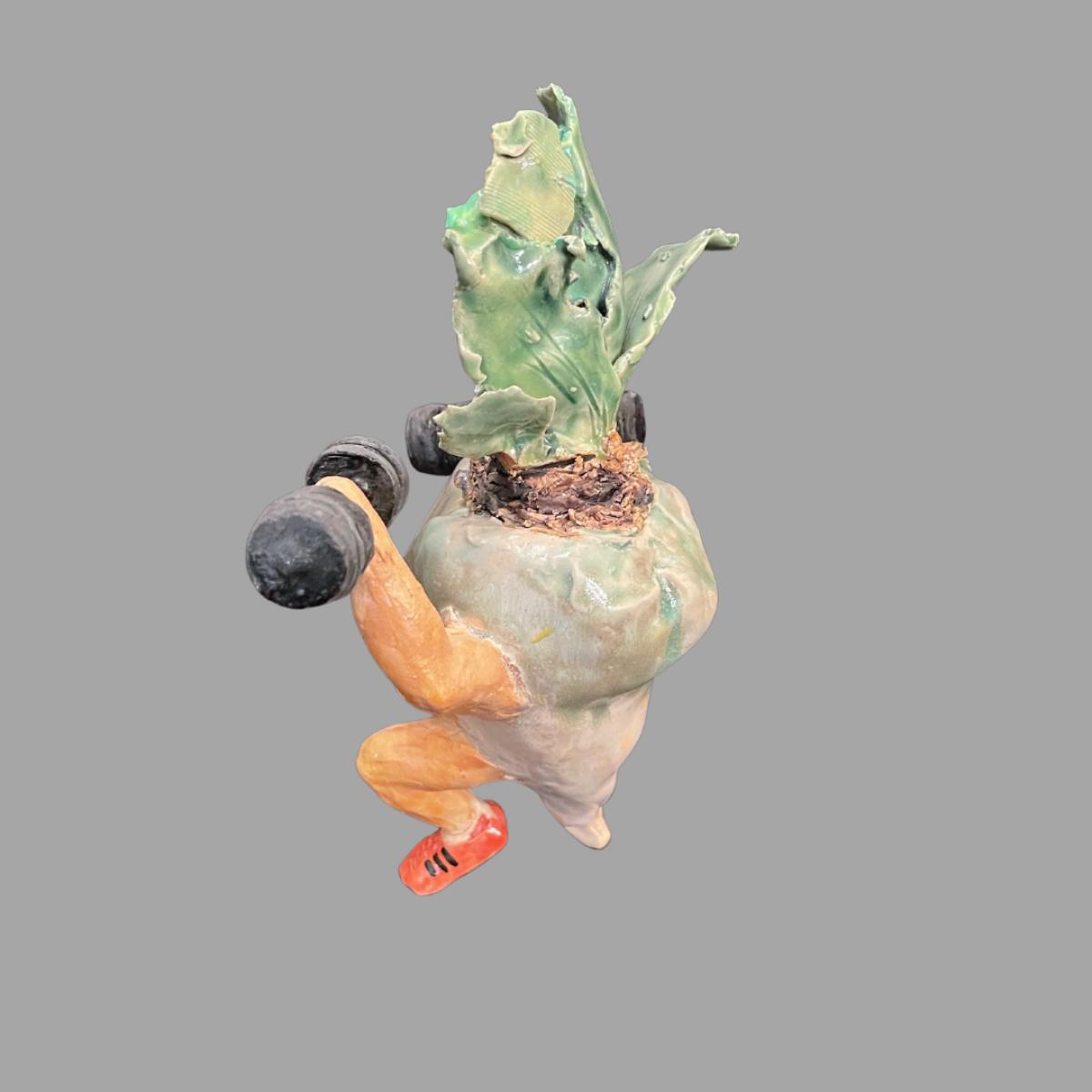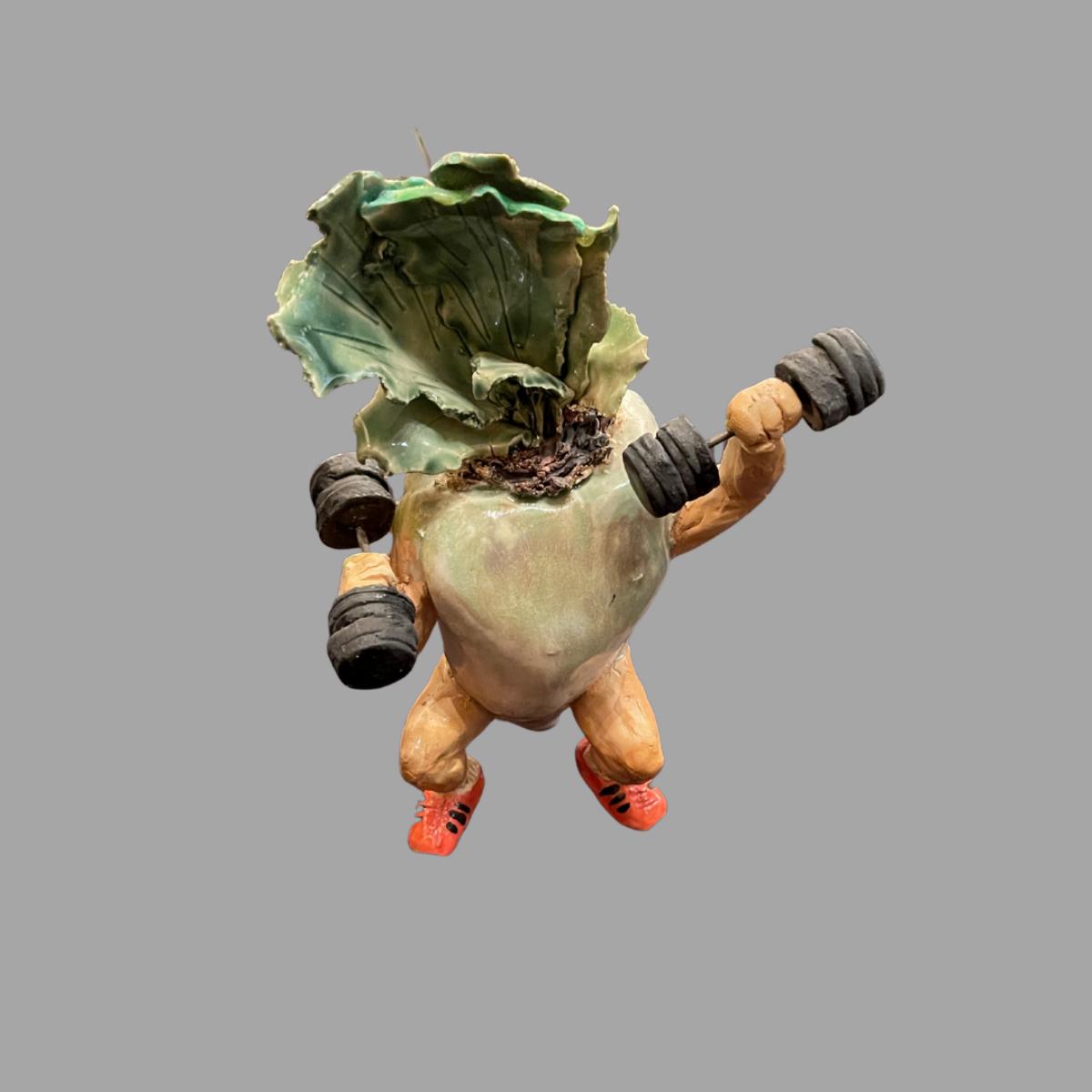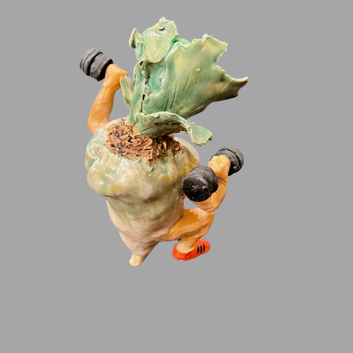 Susan Bergman earned her Master’s degree in American Literature from Tulane, but all she really wanted to do was make things out of clay. Her work can be seen and purchased in NOMA museum shop. This particular collection mixes vegetables with animals and humans. All one of a kind pieces.