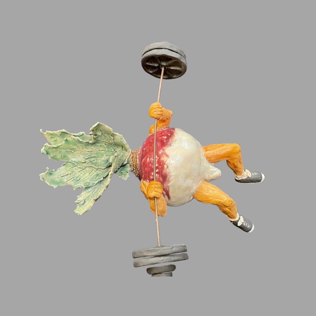 Susan Bergman earned her Master’s degree in American Literature from Tulane, but all she really wanted to do was make things out of clay. Her work can be seen and purchased in NOMA museum shop. This particular collection mixes vegetables with animals and humans. All one of a kind pieces.