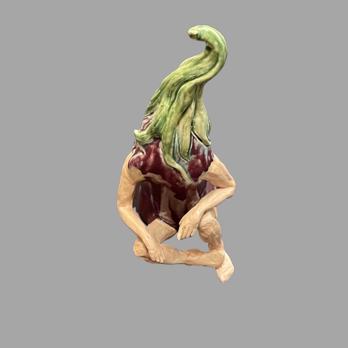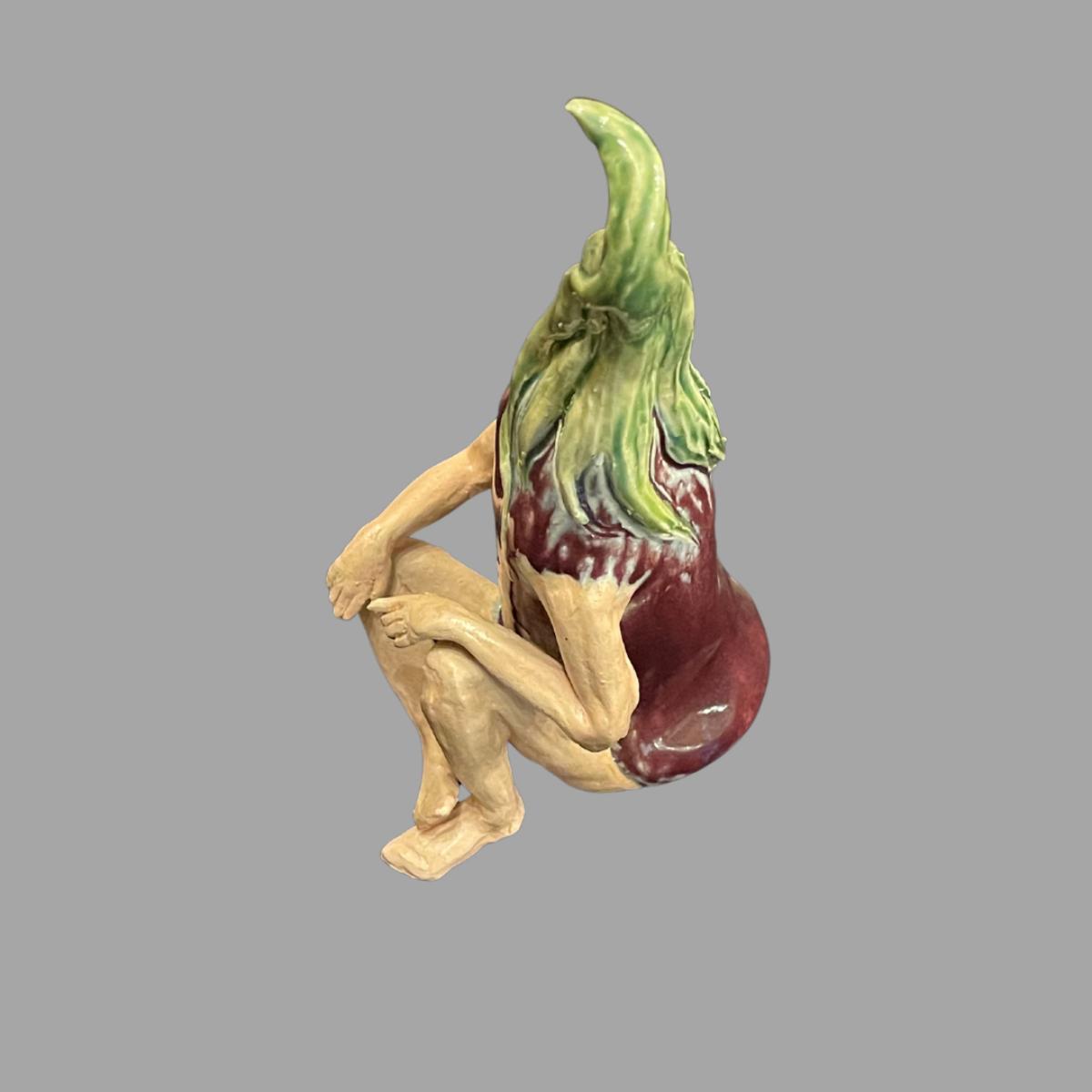 Susan Bergman Sitting Eggplant Sculpture - 8"