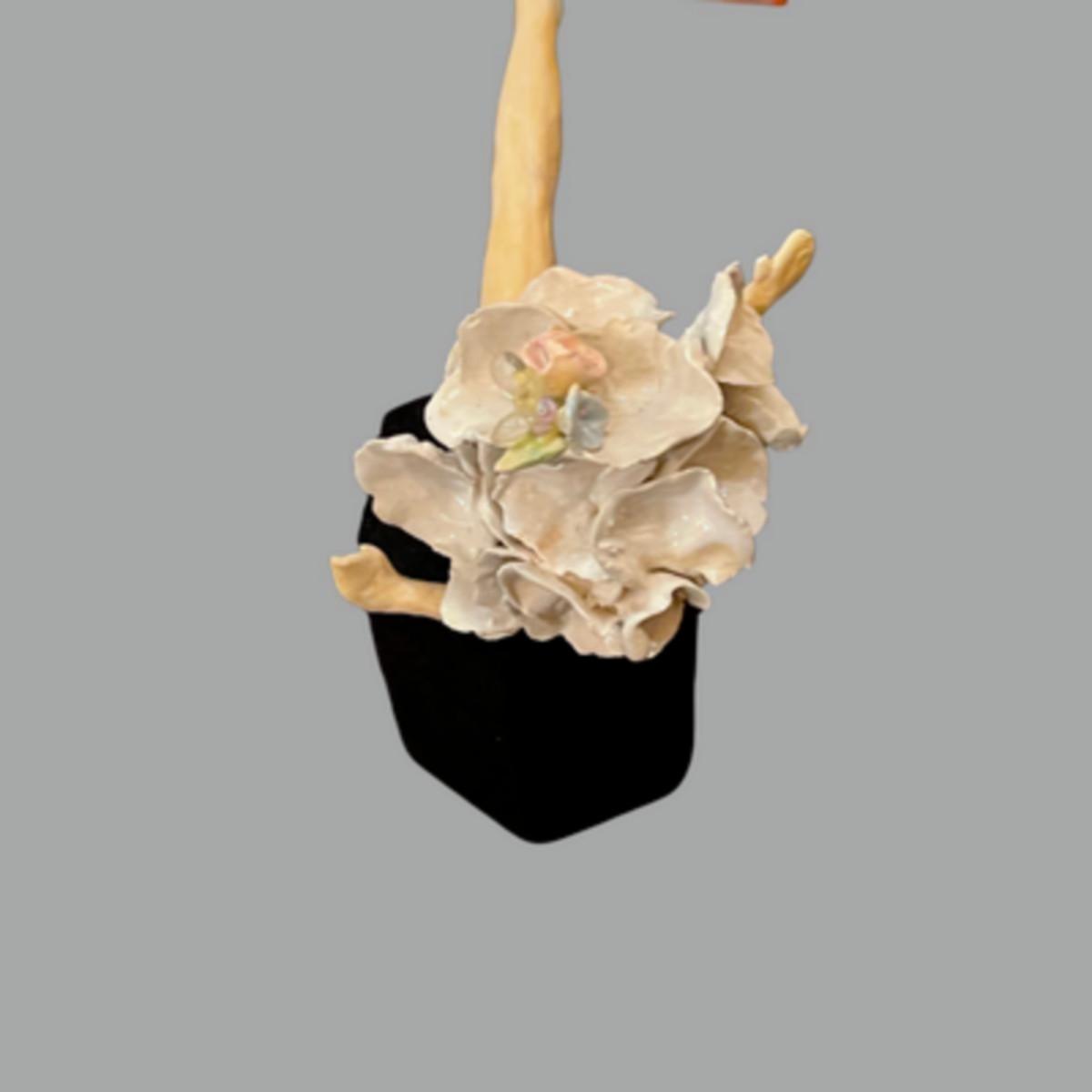 Susan Bergman earned her Master’s degree in American Literature from Tulane, but all she really wanted to do was make things out of clay. Her work can be seen and purchased in NOMA museum shop. This particular collection mixes vegetables with animals and humans. All one of a kind pieces. Her materials are Sgraffito, colored slips, transfers, and paper resist patterns create depth and texture on handbuilt surfaces. Stoneware and mid-range terra cotta primarily built with slabs or coils.