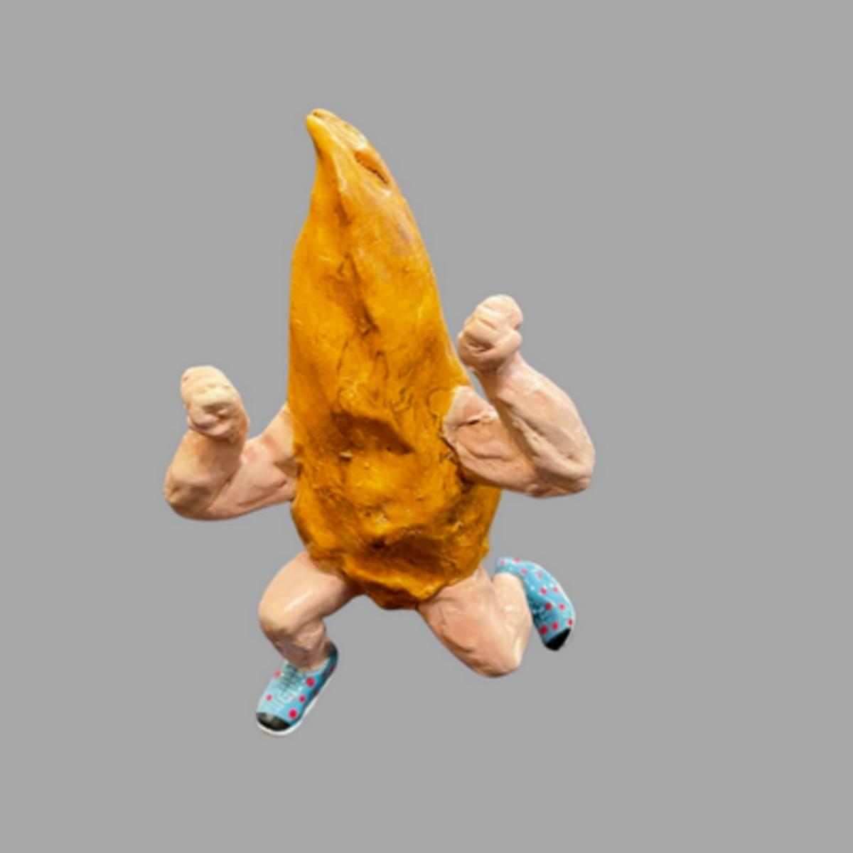 Susan Bergman earned her Master’s degree in American Literature from Tulane, but all she really wanted to do was make things out of clay. Her work can be seen and purchased in NOMA museum shop. This particular collection mixes vegetables with animals and humans. All one of a kind pieces. Her materials are Sgraffito, colored slips, transfers, and paper resist patterns create depth and texture on handbuilt surfaces. Stoneware and mid-range terra cotta primarily built with slabs or coils.