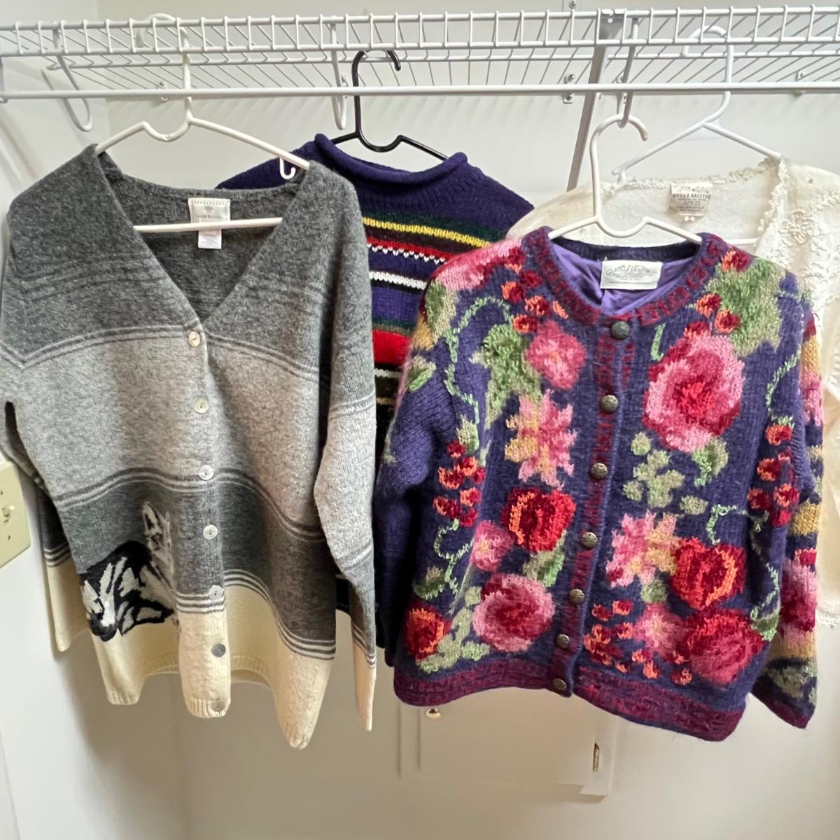 Four Susan Bristol garments in this lot that includes two sweaters and two cardigans. See images for sizes.