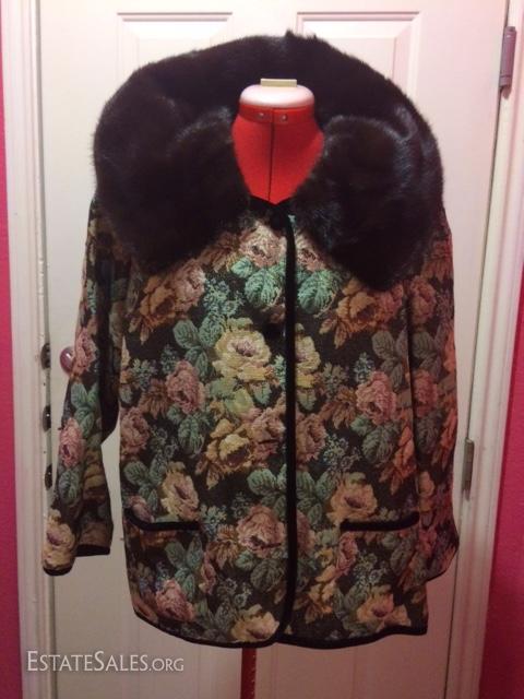 Lanz Original from 1950's/ tapestry princess fur trim coat jacket. . * Floral tapestry shell *