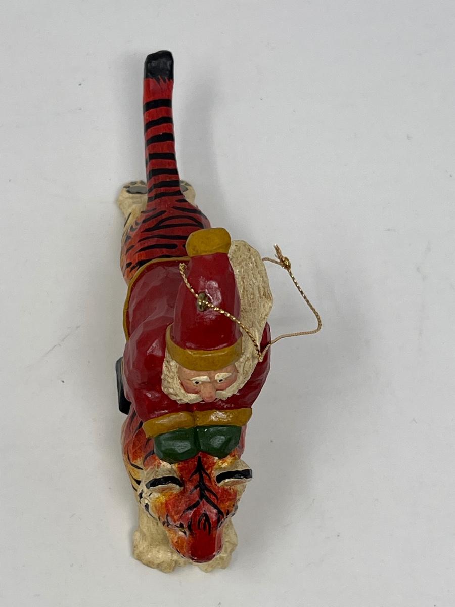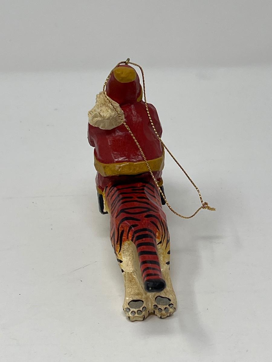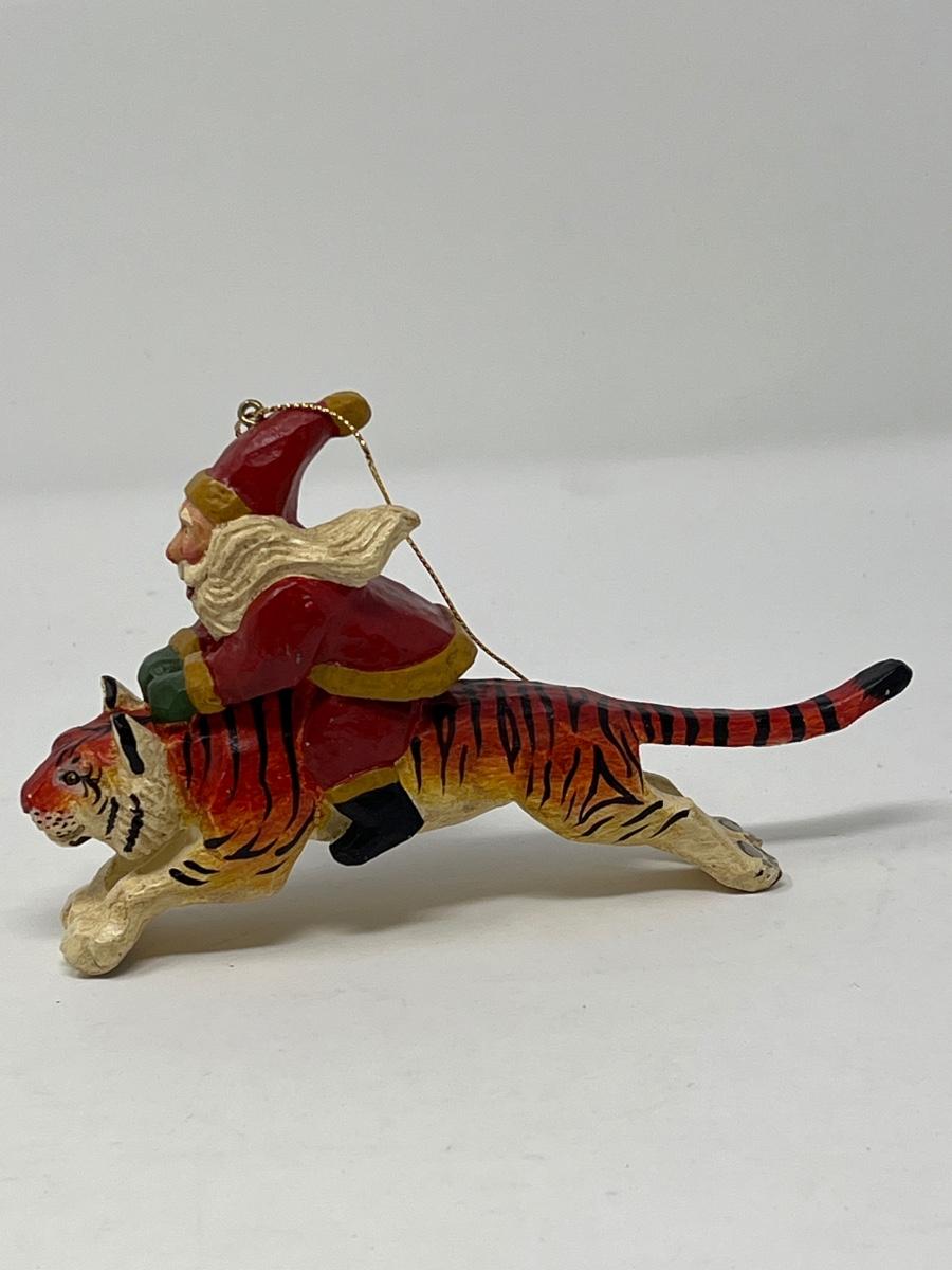 Unique ornament by Susan Smith (1995) - Santa Claus riding a tiger. Wonderfully crafted. 7” long x 4” tall x 1.25” wide.