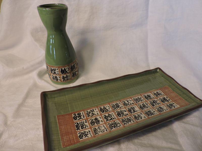 Sushi plate and Sake cup. **Please read Terms and Conditions before placing a bid. Pick up is Wednesday, September 25 from 4pm to 7pm and Saturday, September 28 from 9am to 1pm in Williamstown, NJ. All sales are final. All sales are as is, where is. Please review all photos. Any props included in photos are not included in listing. All measurements are approximate.