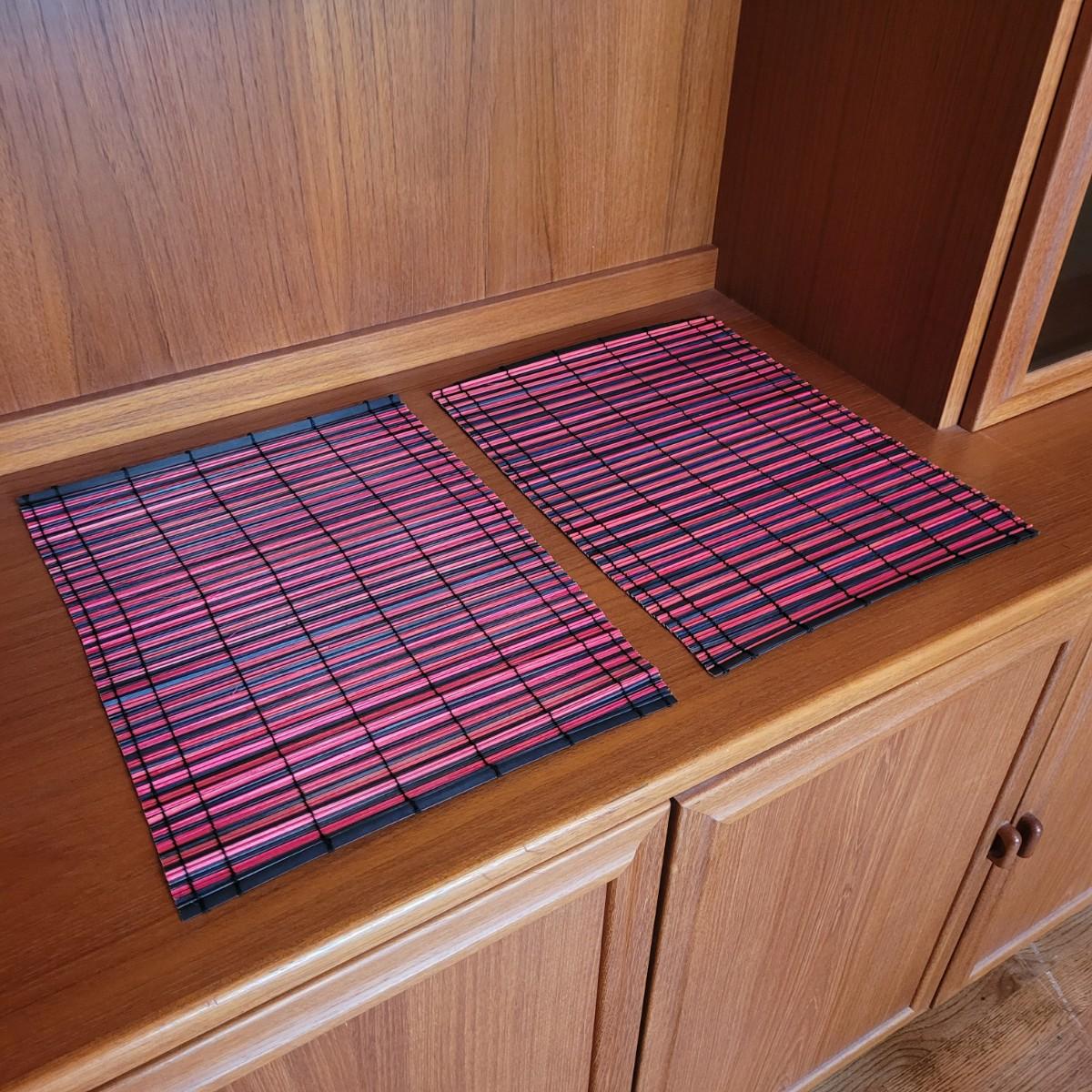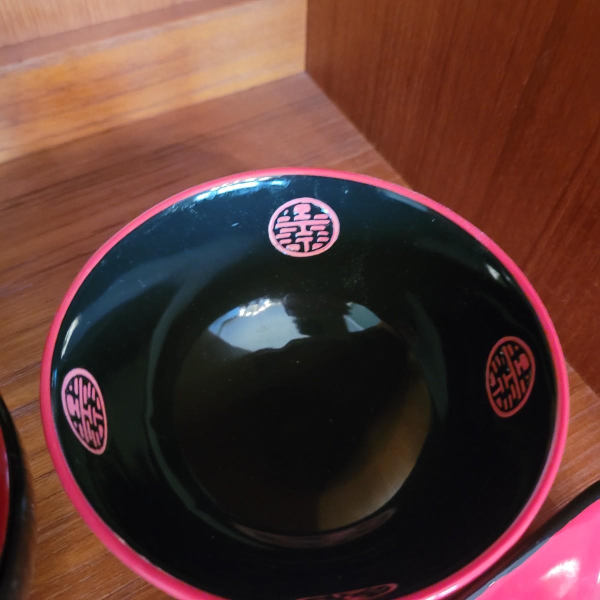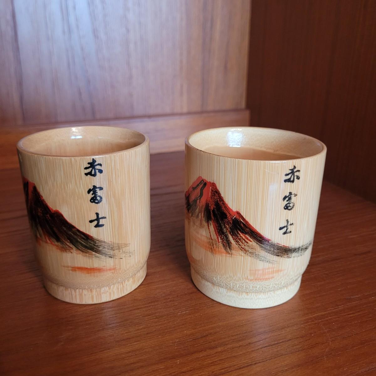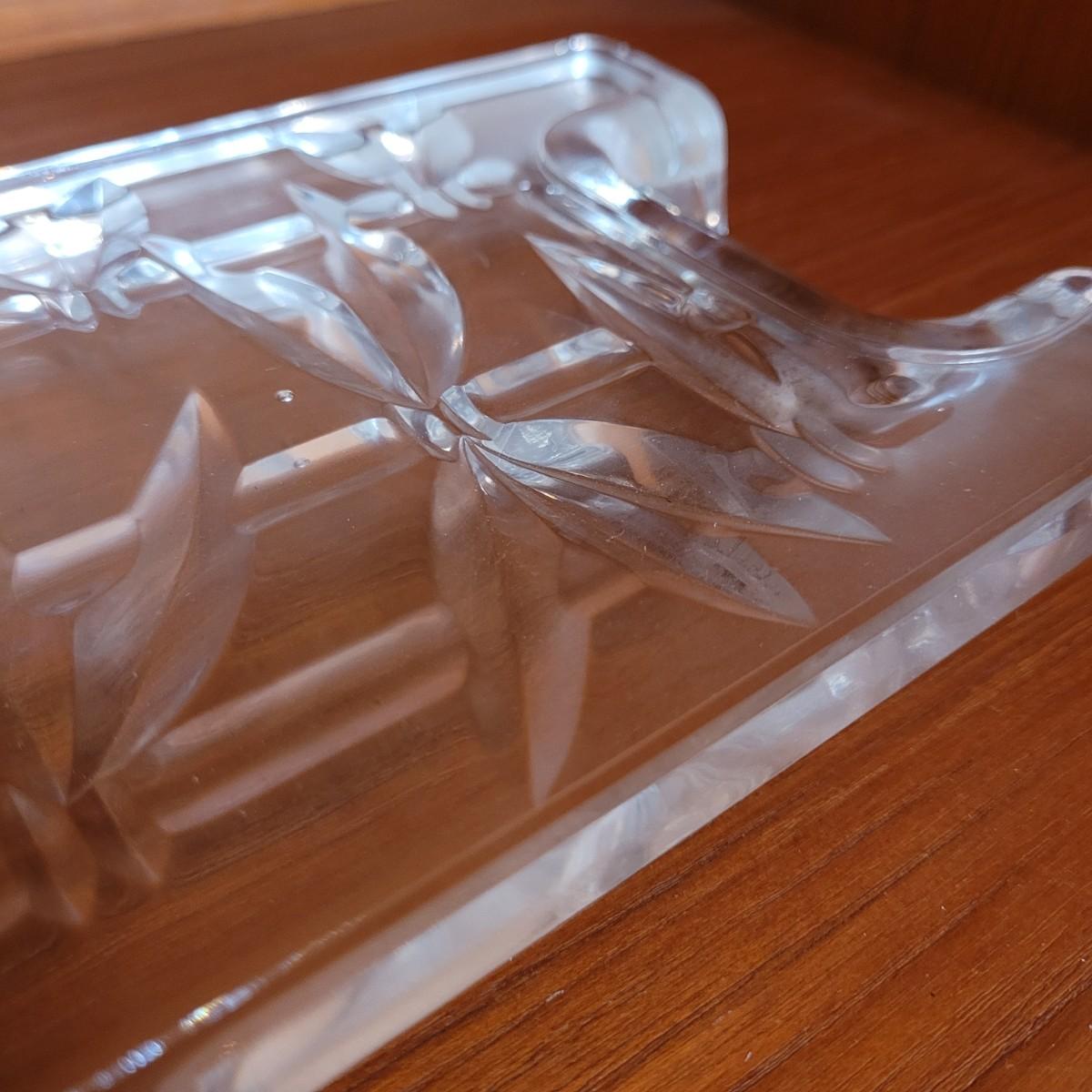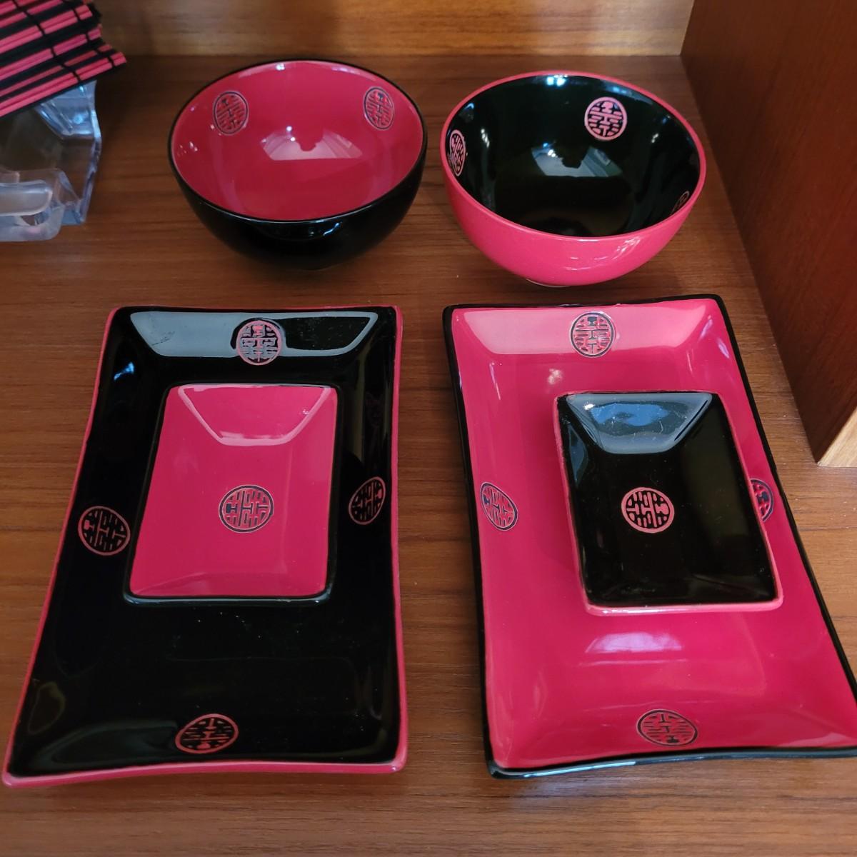 This sushi set includes an etched glass serving tray with a bamboo motif, two rolling mats, two sets of serveware with soup bowls, soy sauce dishes and plates, and four pairs of plastic chopsticks. Also included in this lot are two bamboo tea cups and a large etched glass serving bowl with a bamboo motif. Large bowl measures approximately 13.5”DIA x 6”H. Shipping available.