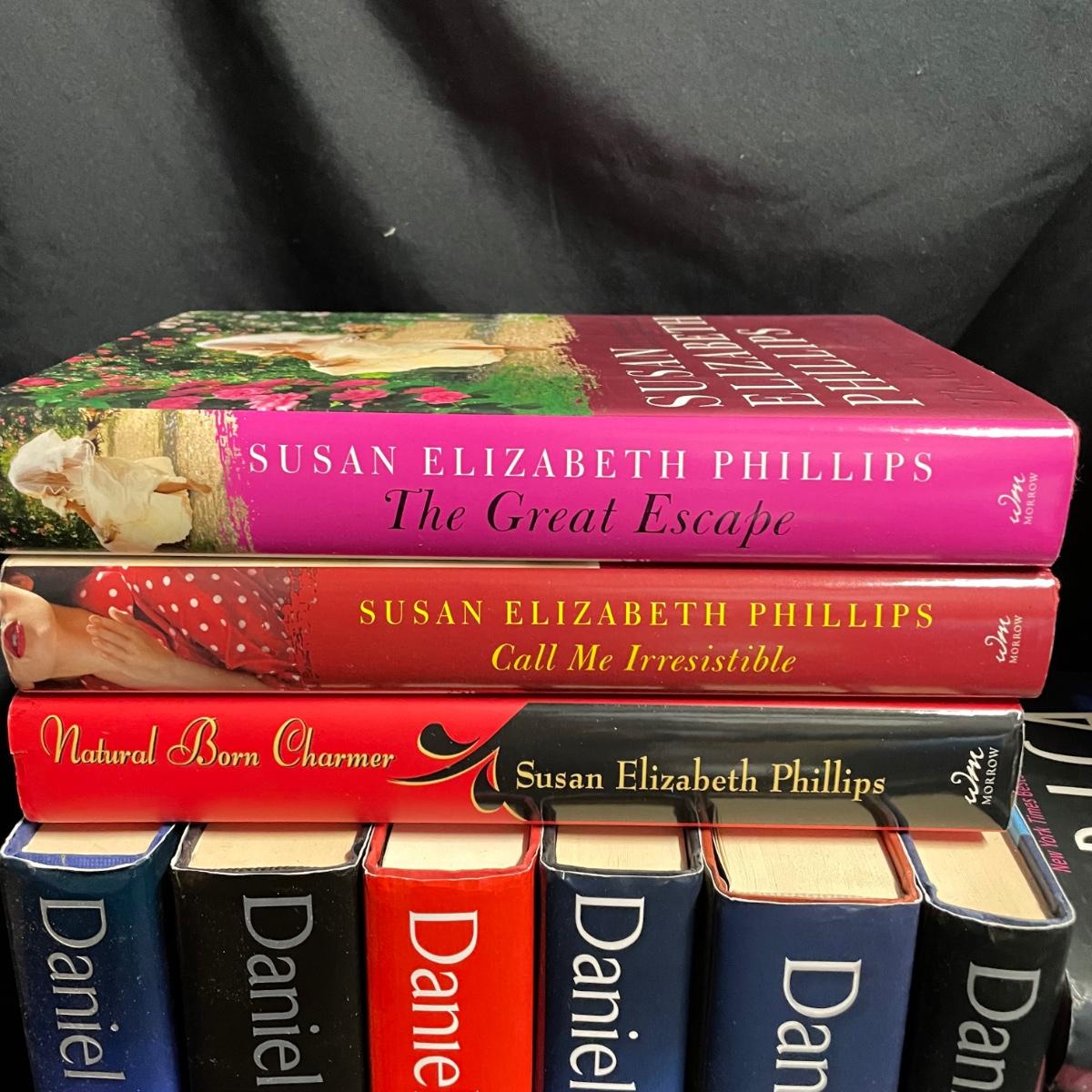 Small collections of hard cover novels by Amanda Quick, Erica Spindler, Daniel Silva, Susan Elizabeth Phillips and Stephanie Laurens. All authors have “New York Times Best Selling Author” on at least one cover. See images. Shipping available.