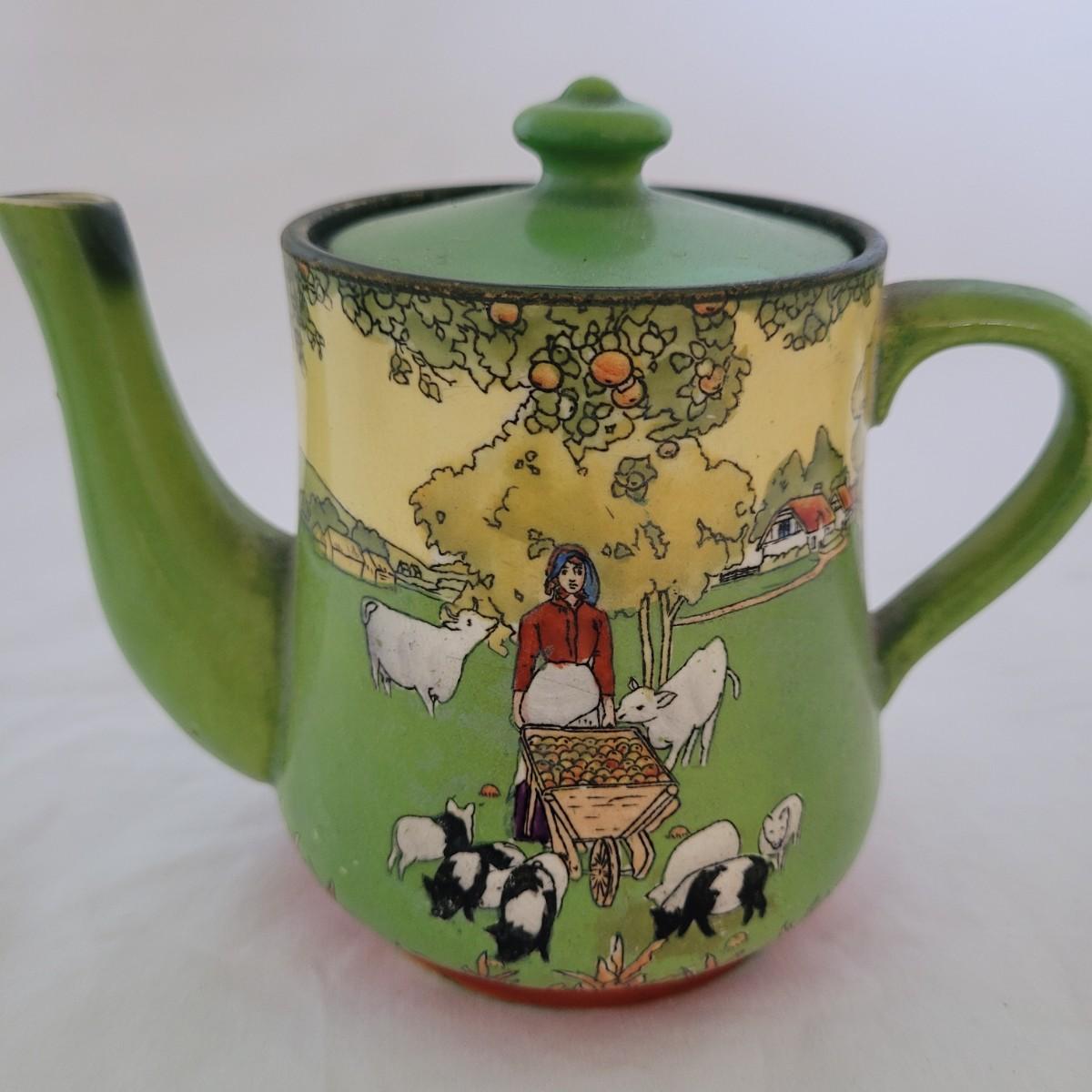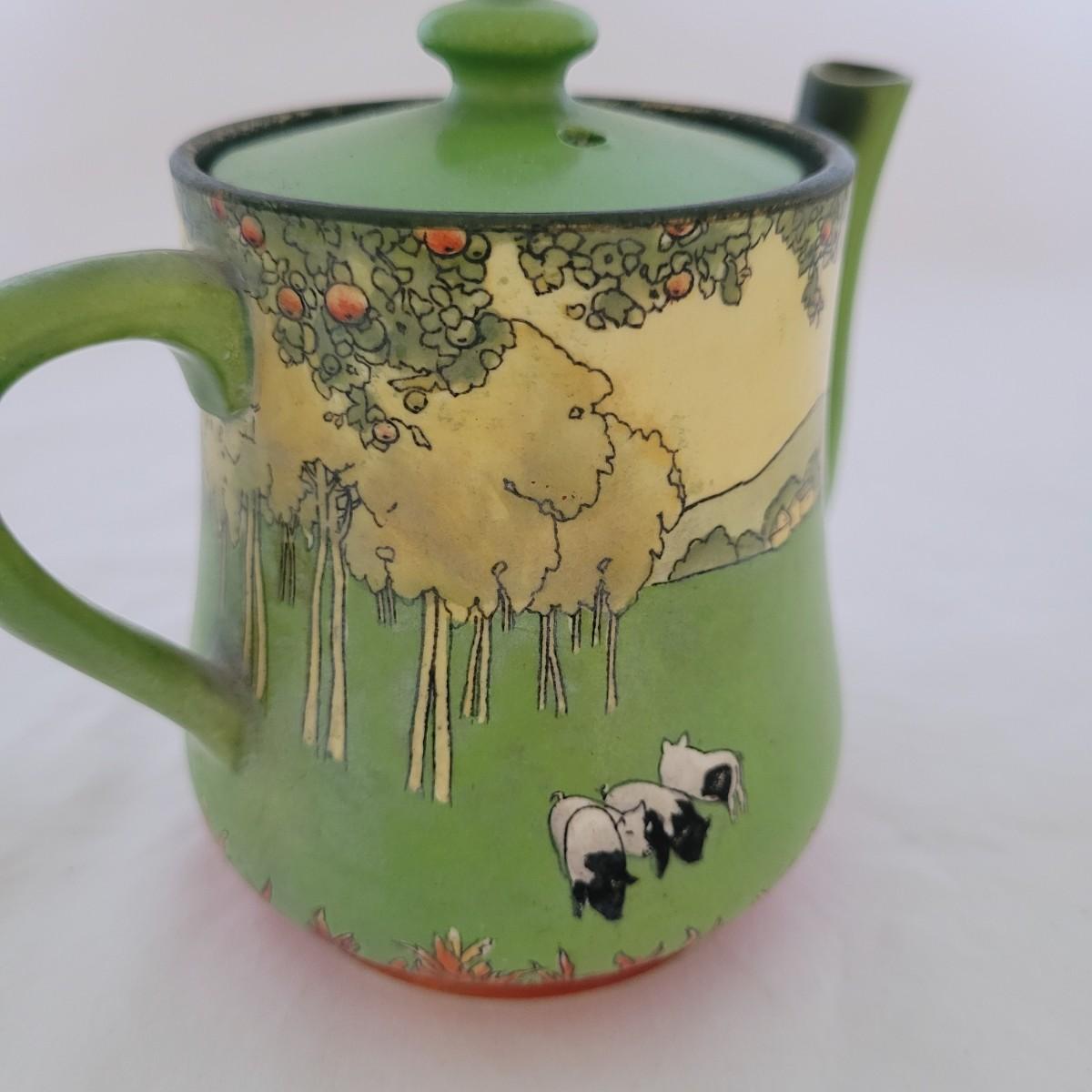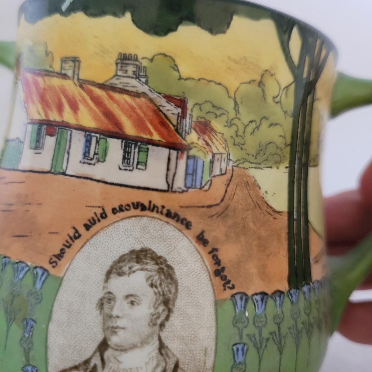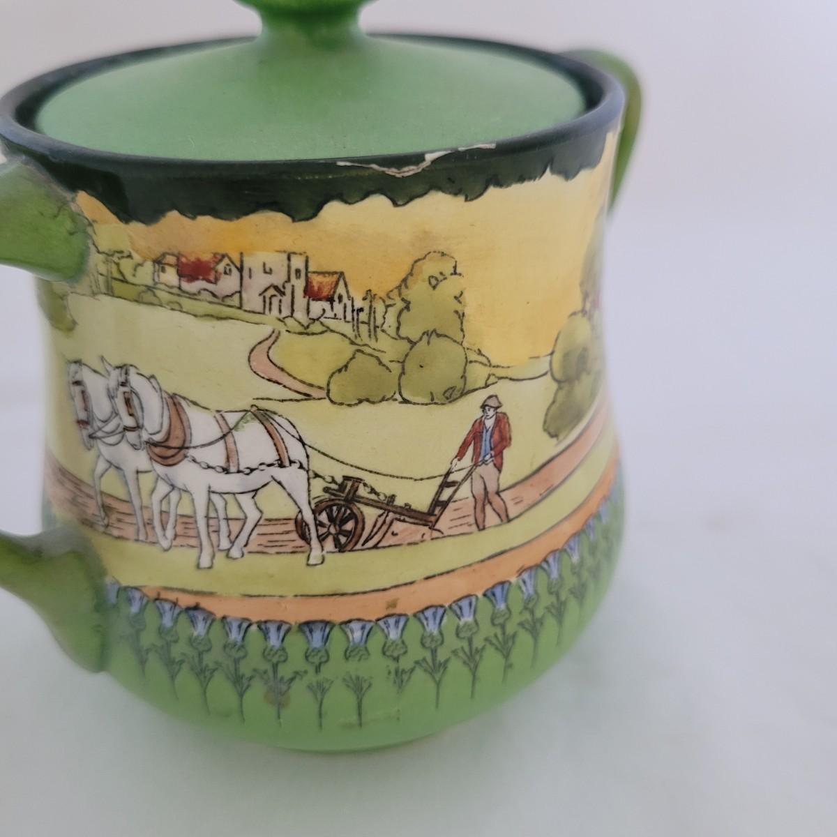 Frank Beardmore & Co. Sutherland Art Ware sugar and creamer set. This set appears to be from the Burns and His Birth Place collection depicting Robert Burns, the writer of Auld Lang Syne. The creamer measures approximately 6” x 5”H. Please see photos for details. Shipping available.