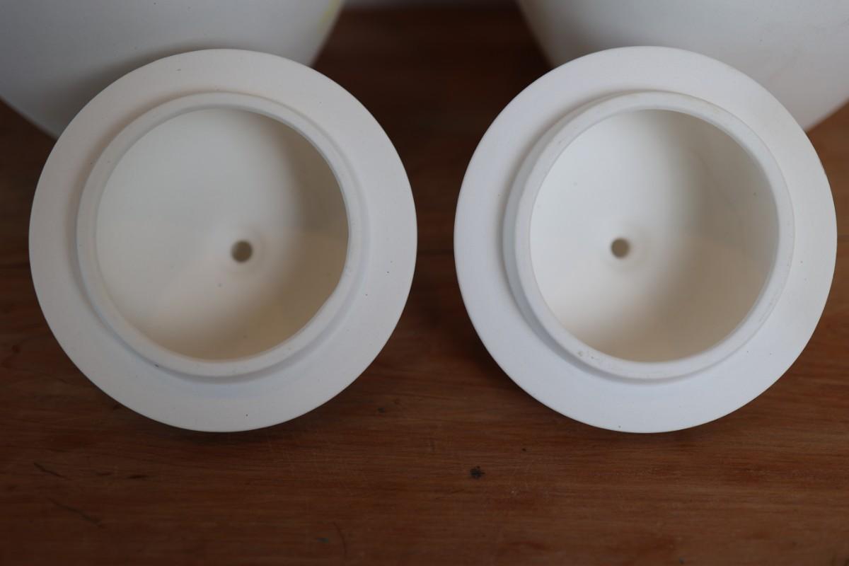On one jar there is some yellow on the bottom, see pictures for reference.