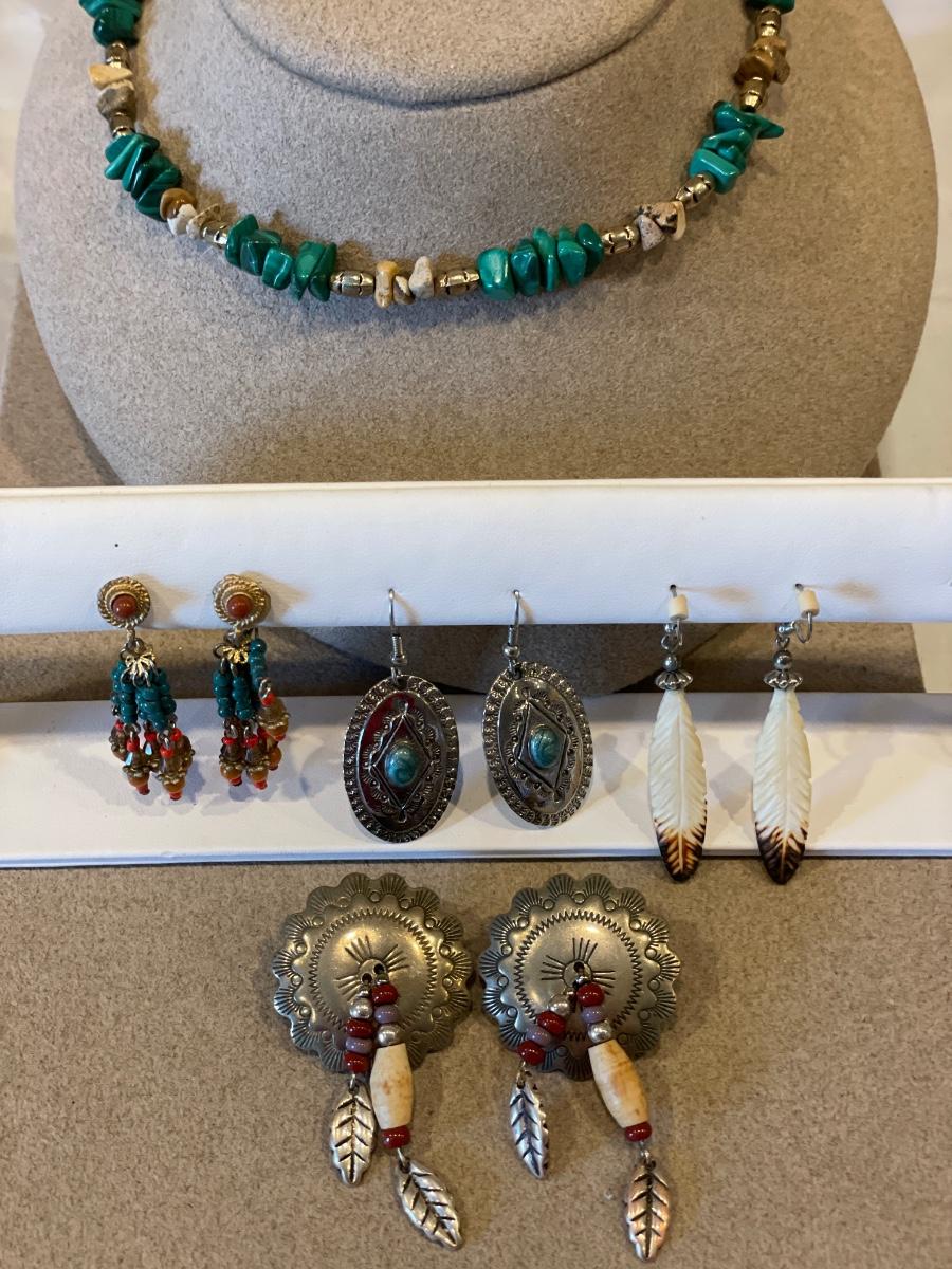 4 pairs post earrings with necklace made by Ladyhawke Jewelry