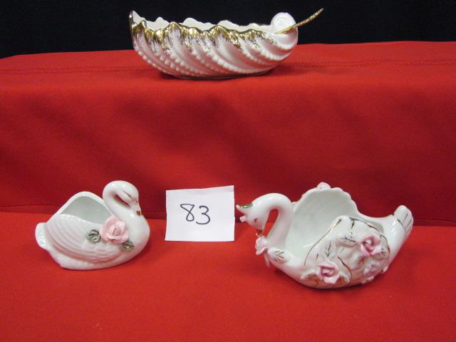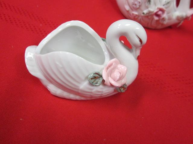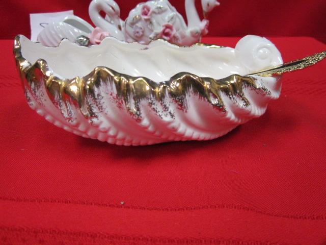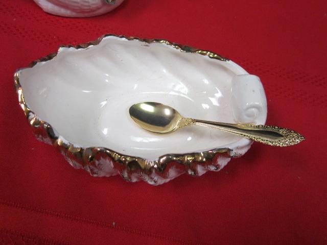 Swan Ceramic Dish, Ceramic Dish W/ Spoon, Swan Ceramic Dish, 4 pcs