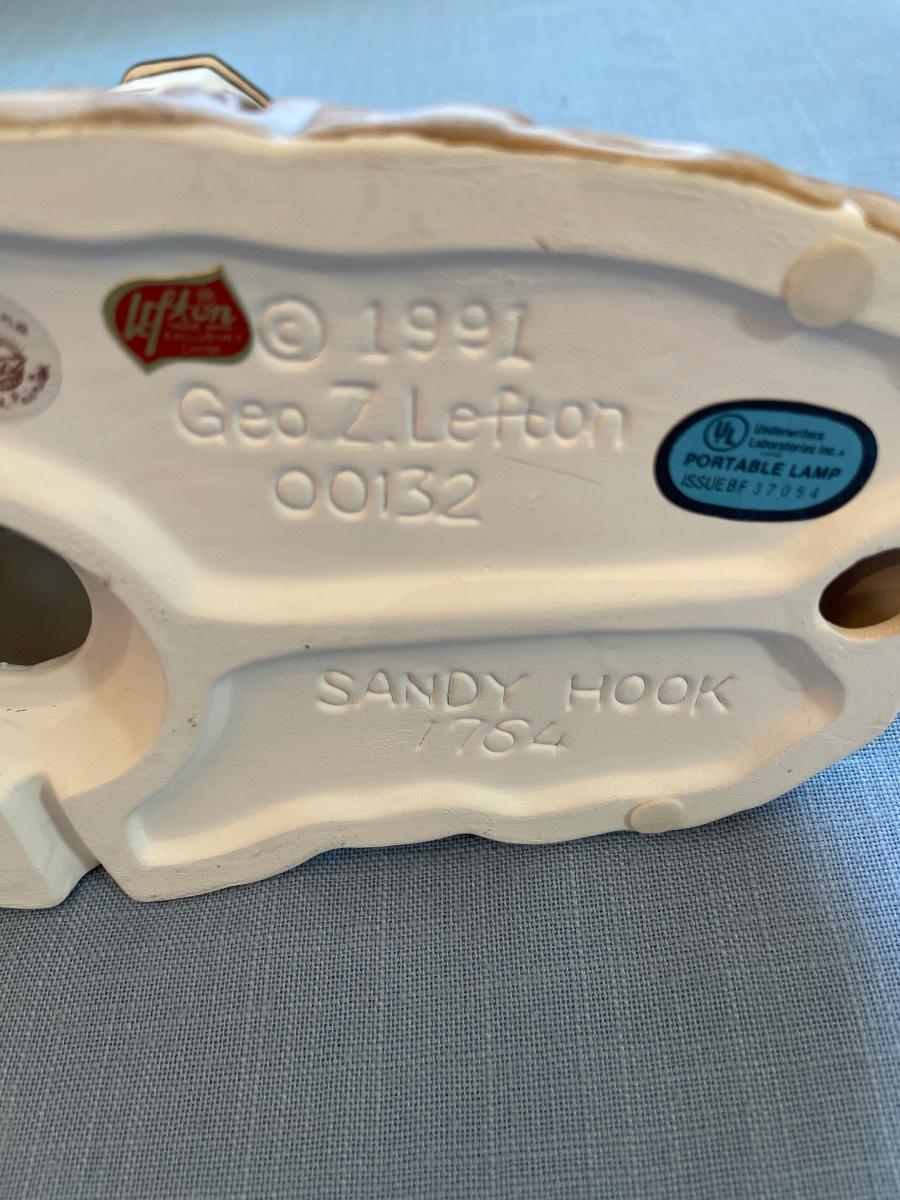 Swan ceramic holder and Lefton Sandy Hook lighthouse