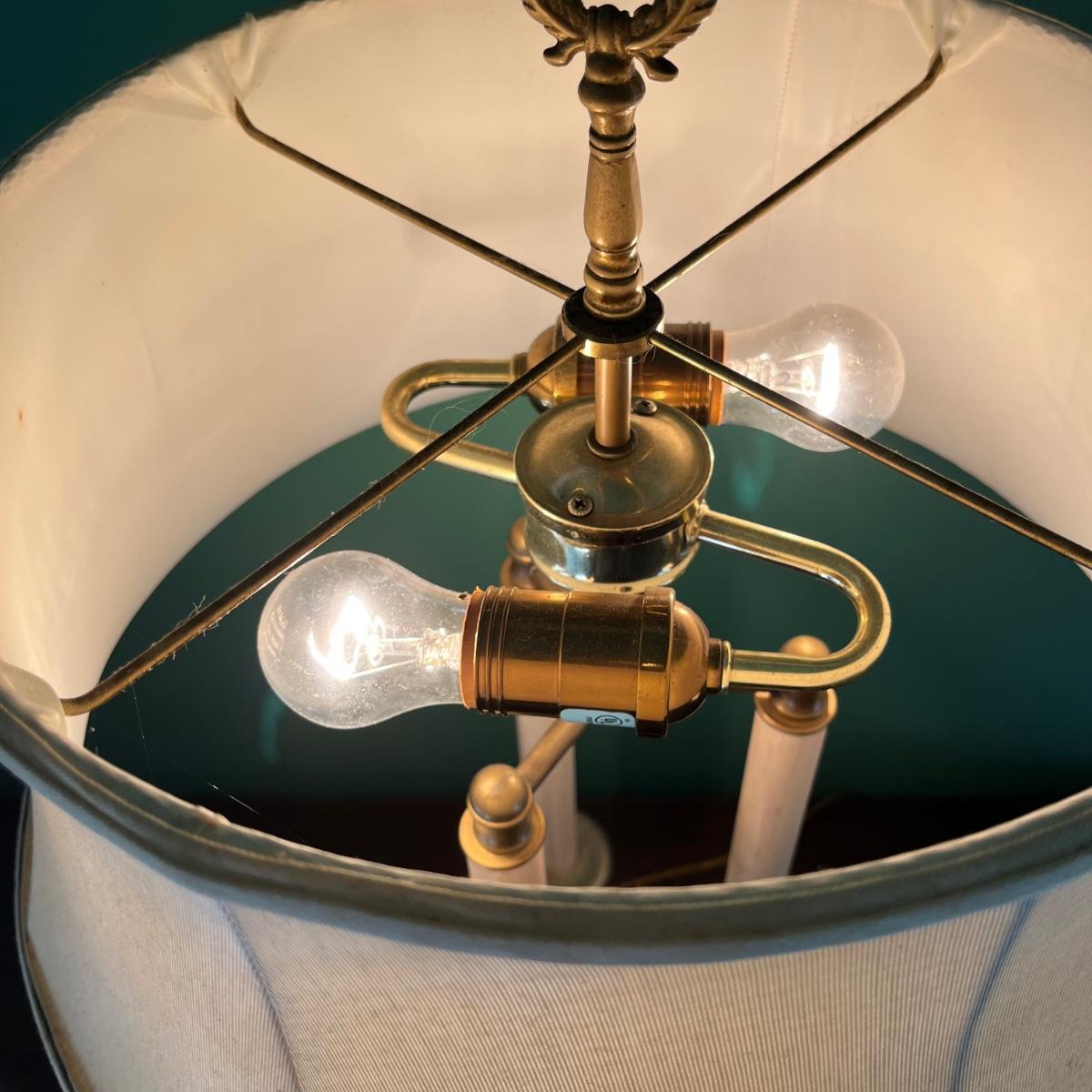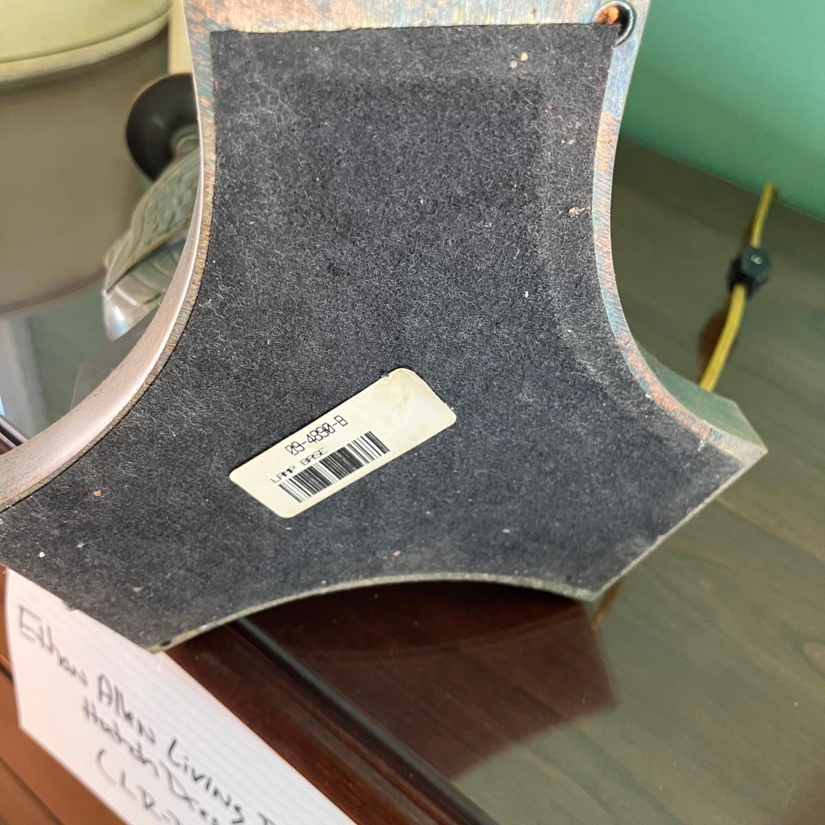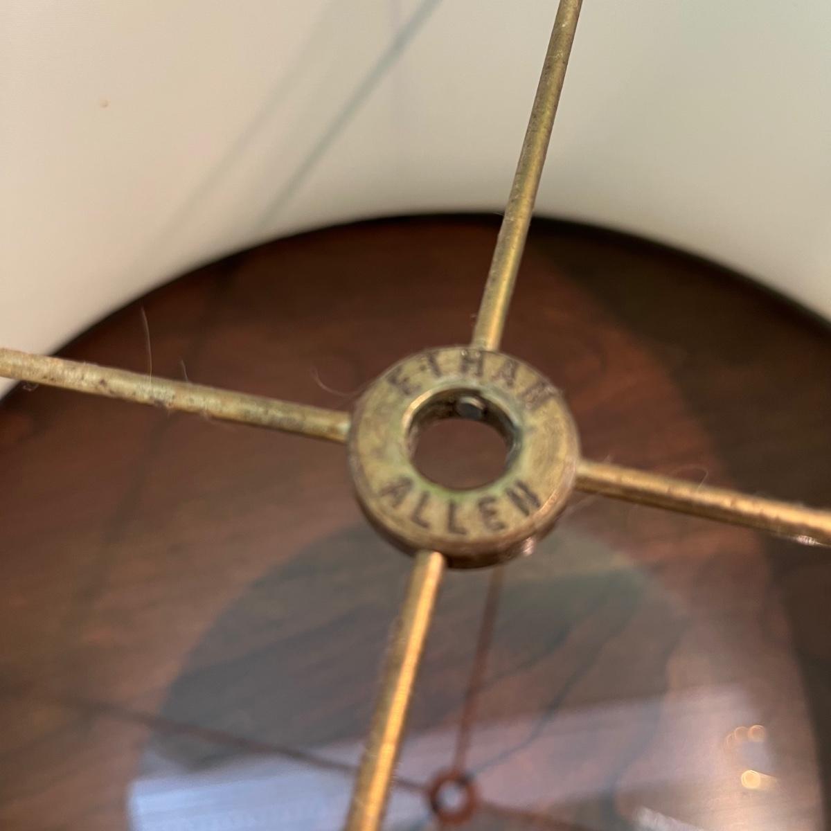 Lot includes a two bulb table lamp with a swan motif. Swans and base appear to be brass. Lamp without shade measures 8.5” x 8.5” x 26” tall. Shade is marked Ethan Allen.