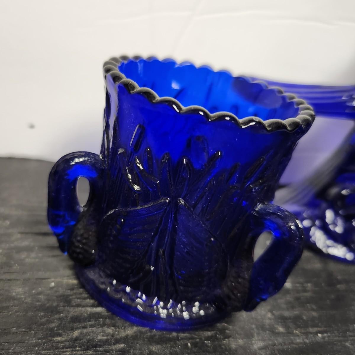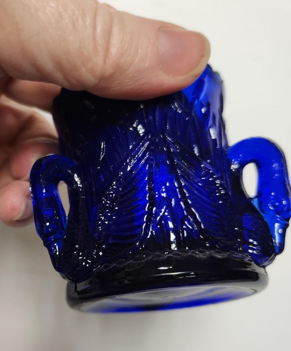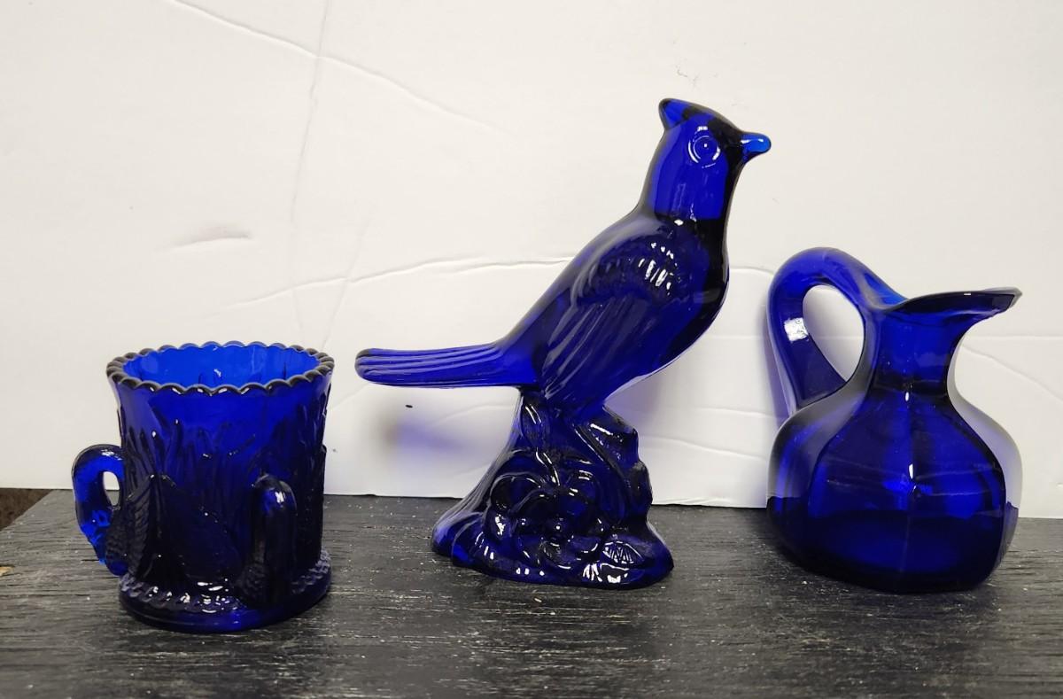 Tough time calling that a cardinal because it is blue...so I will call it a blue jay :). The swan toothpick was made by Westmoreland and that little blown cruet is so beautiful.