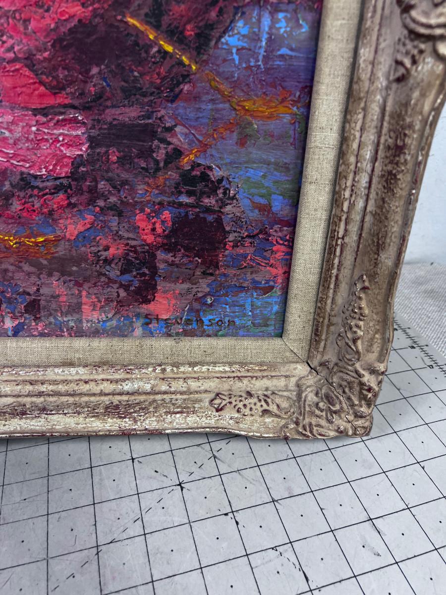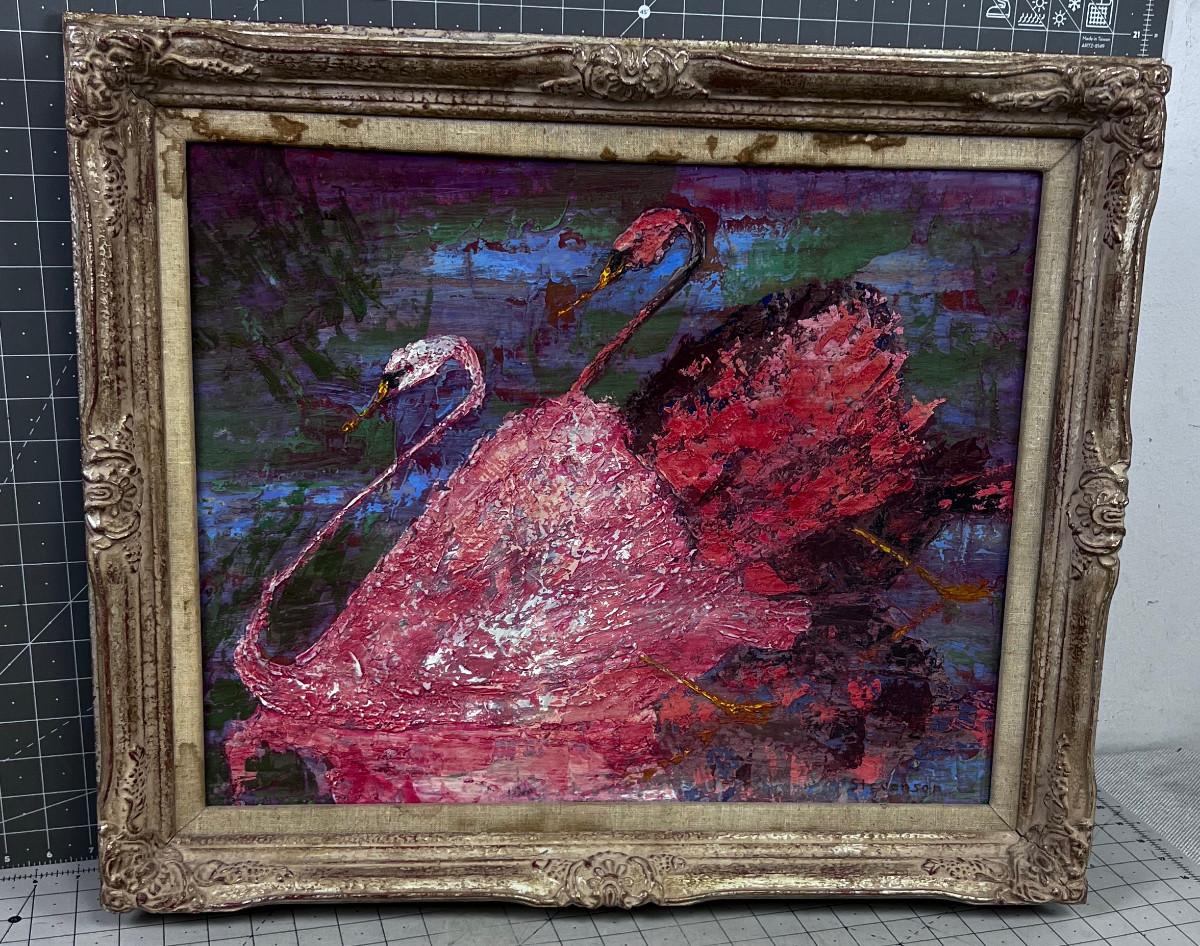 Measures 16 X 20 Plus the Frame. WOW! NEAT!!! I want it! Needs a professional Re- Mounting Service. Its in need of attention.