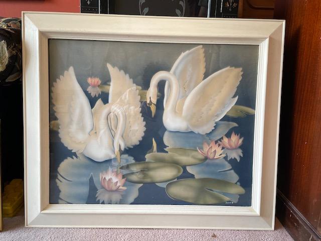 Swans in the lily pads art - white wood frame Wall Art by Turner Manufacturing out of Chicago. This one is the 'Swans' in the lily pads Size is about 36 x31