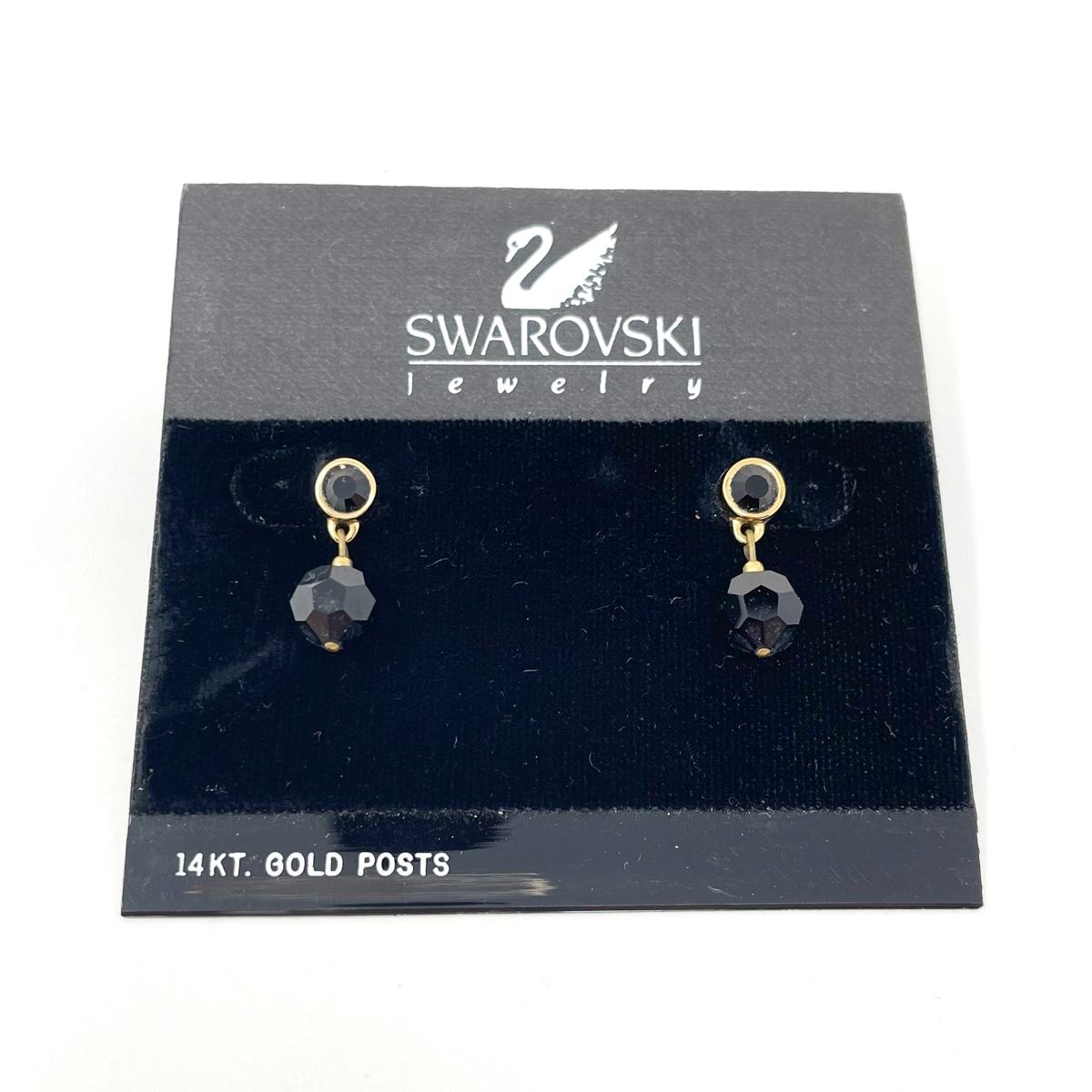 SWAROVSKI 14KT GOLD AND BLACK BEAD EARRINGS