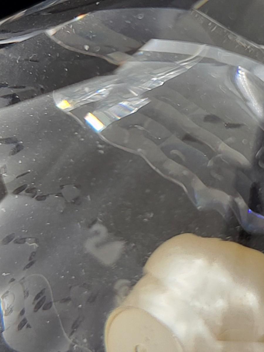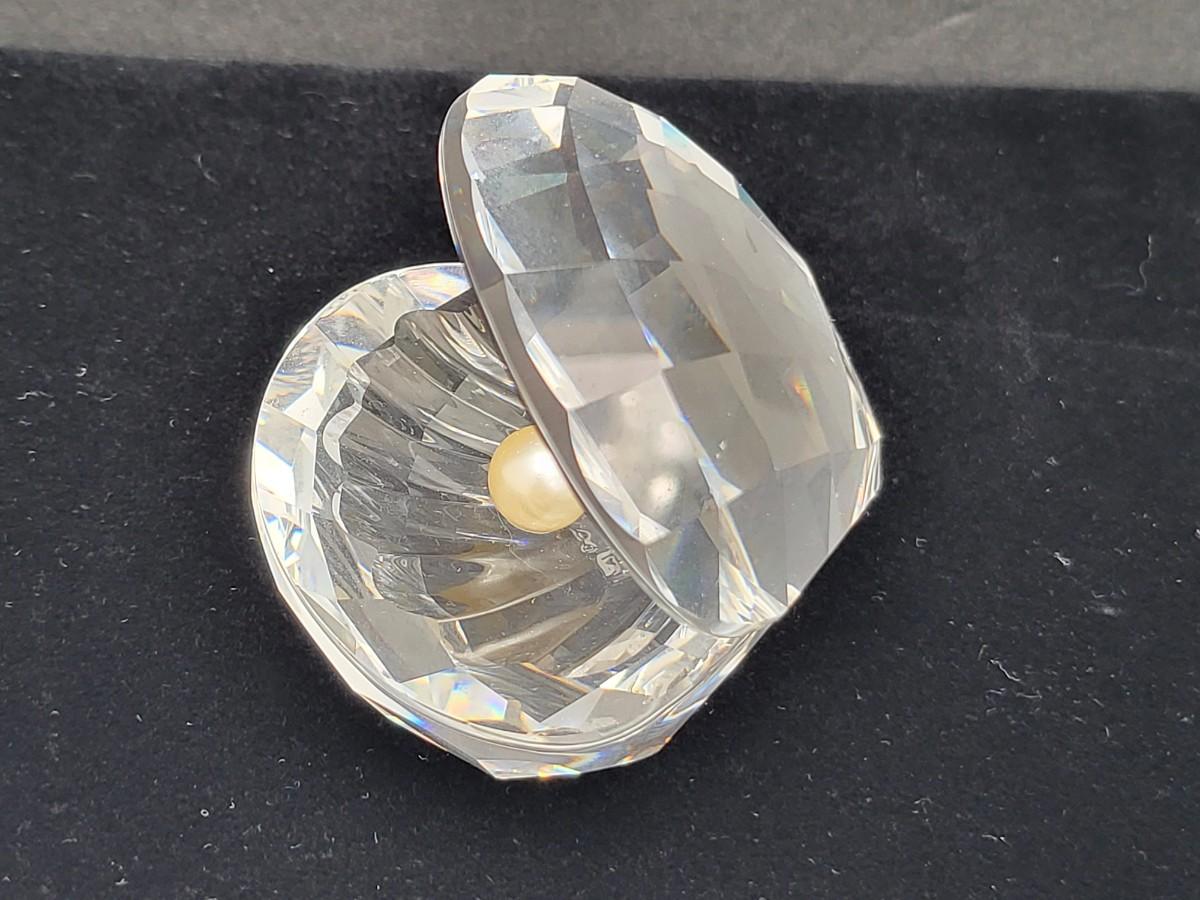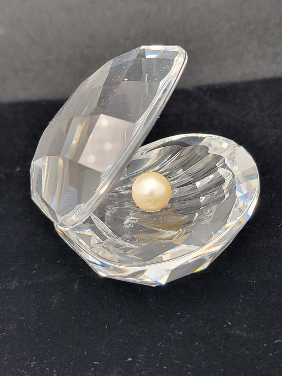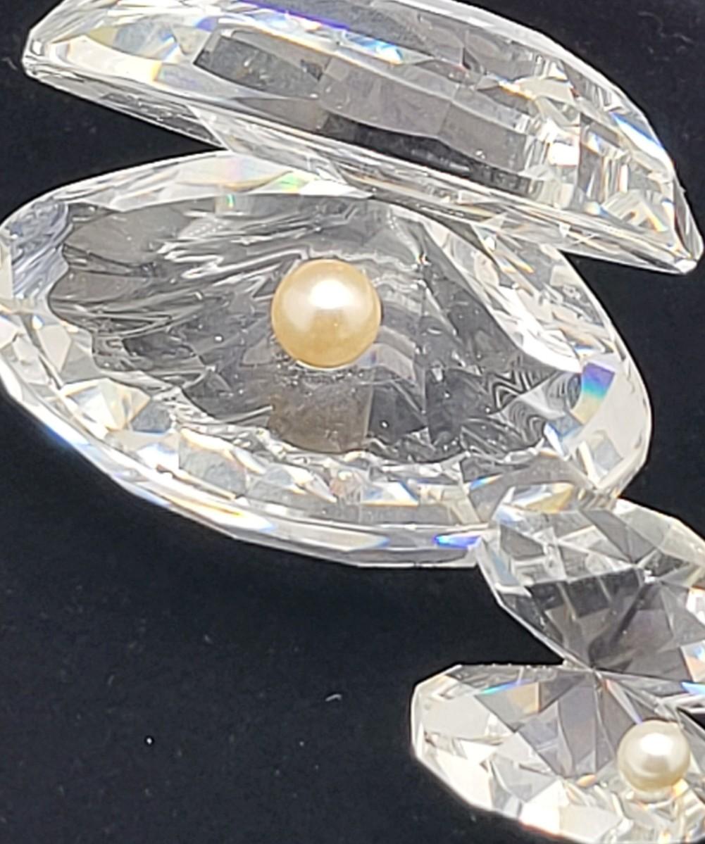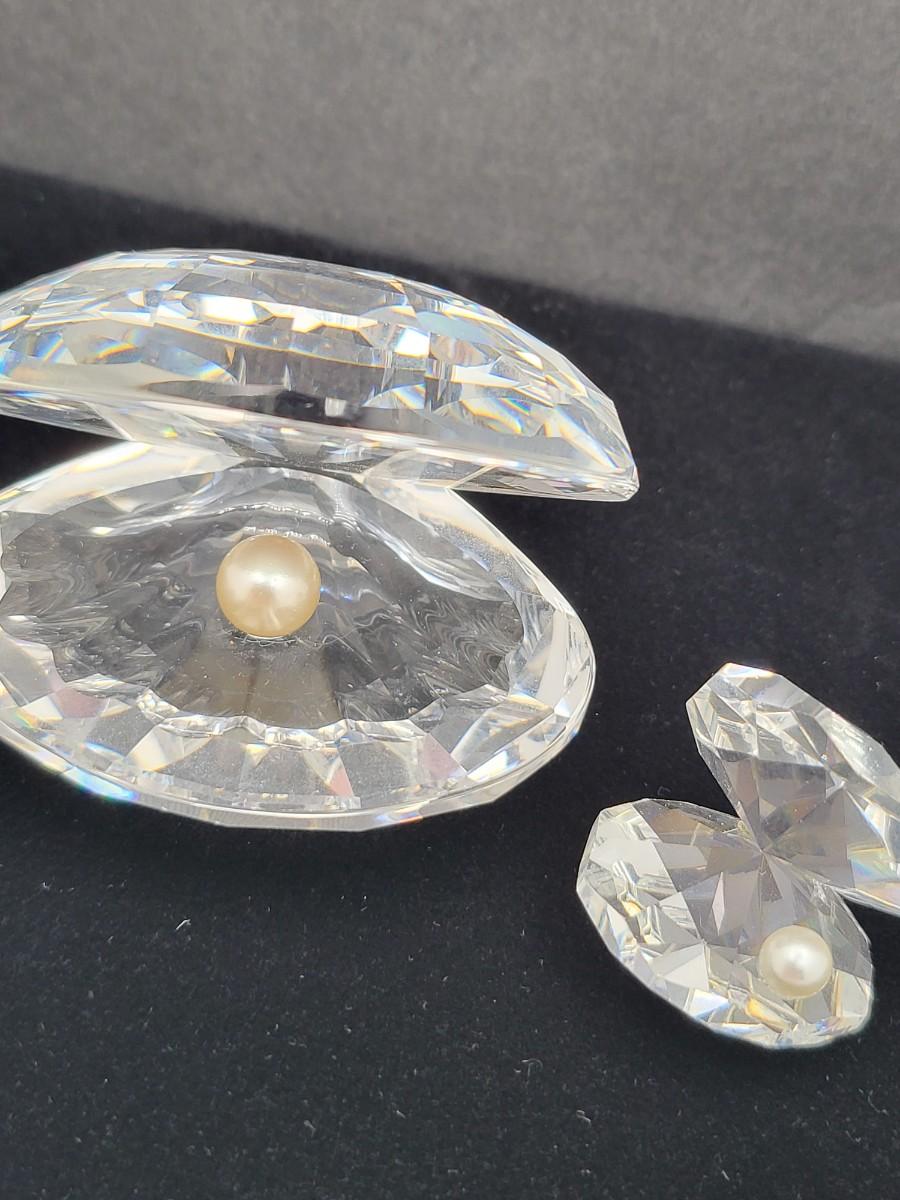 Gorgeous crystal Swarovski, large and mini clamshell figures. Both with faux pearl. Larger one measure 2.5" wide x 2.25" deep x 2" tall with swan mark. The smaller one is 1" long x 1" deep x 1.25" tall. Excellent condition. No box.