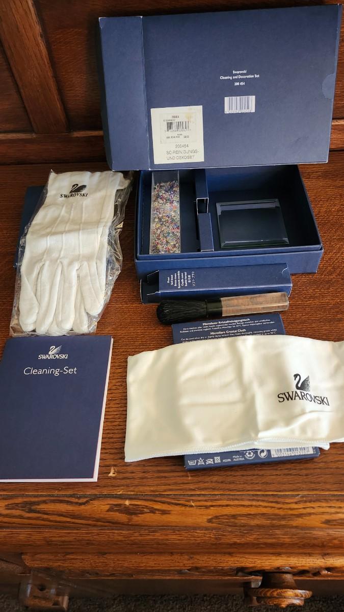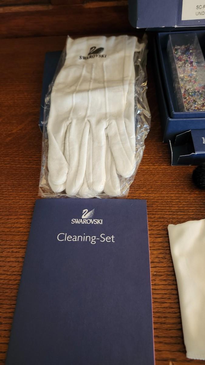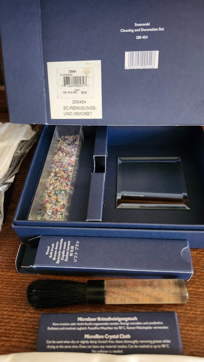 This new set includes gloves, a cleaning cloth, a soft brush, and an instruction book. It has a lovely set of crystals to display around your crystal.