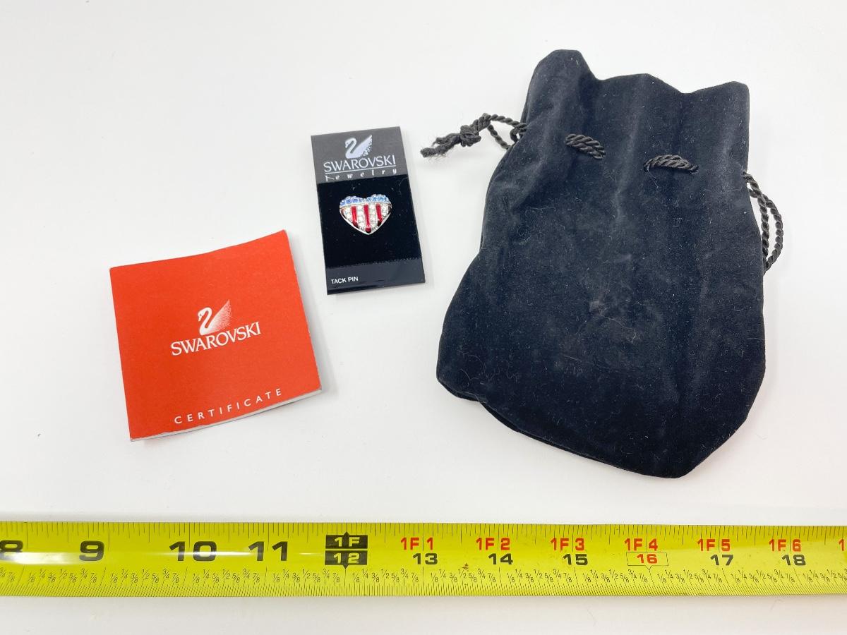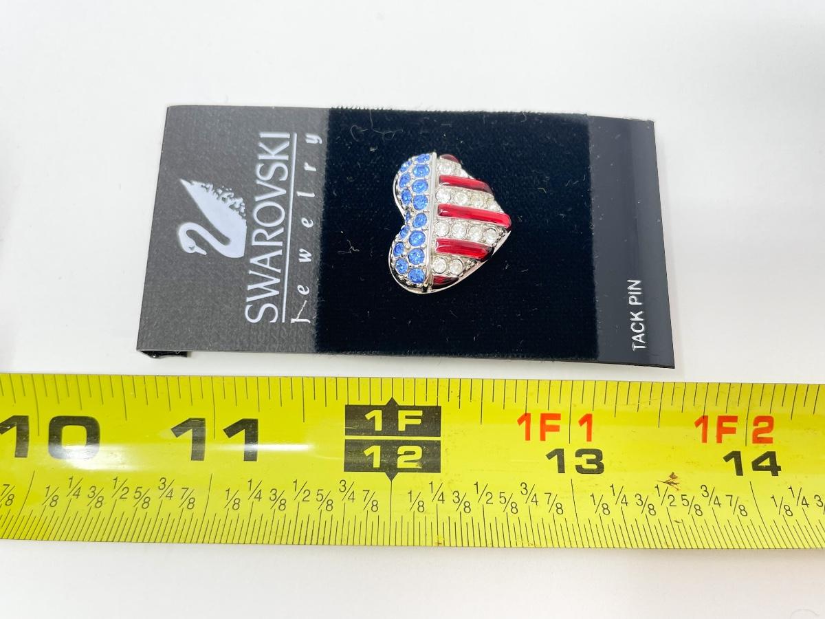 SWAROVSKI CRYSTAL AMERICAN FLAG HEART PIN