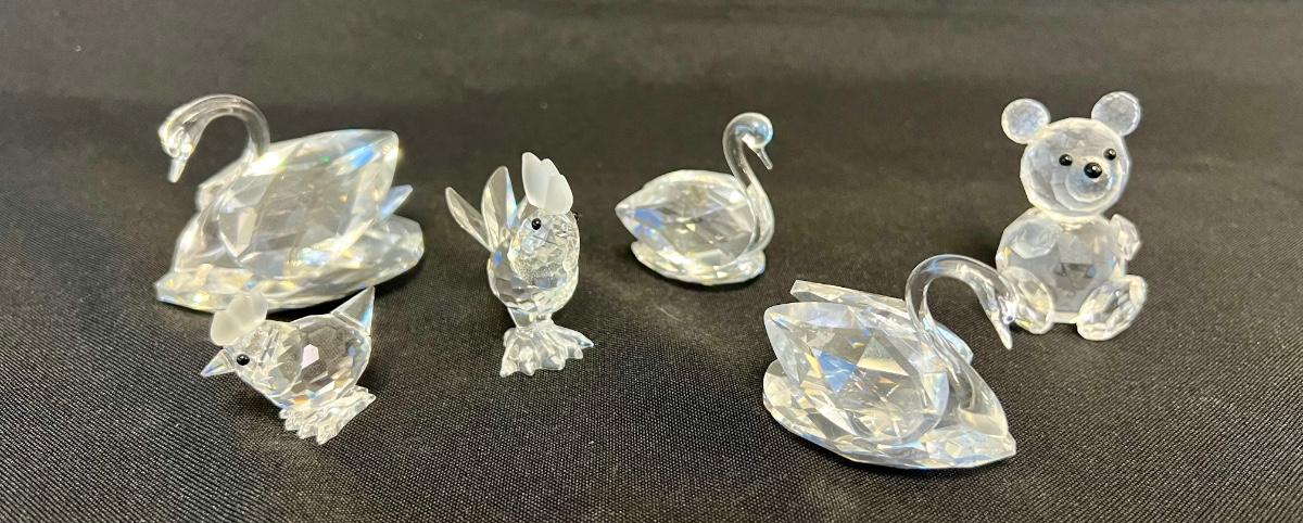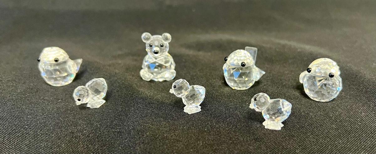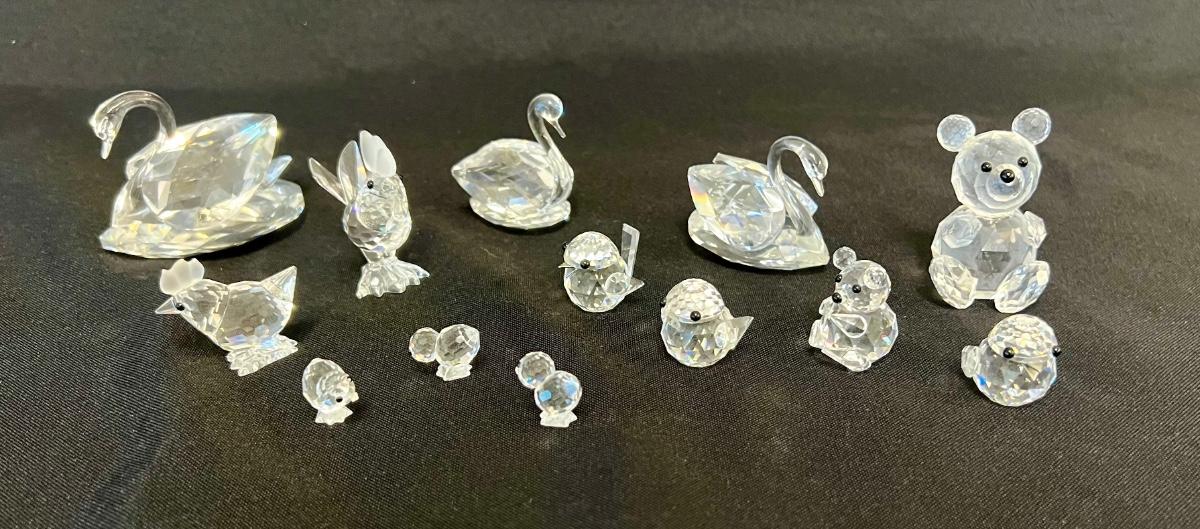 Includes swans, chickens, bears, and more. Total of 13 pieces. Some of the pieces may have flea bites. Measurement of largest: 2.25"H. The smallest pieces are approximately 1/2"H. [ML]