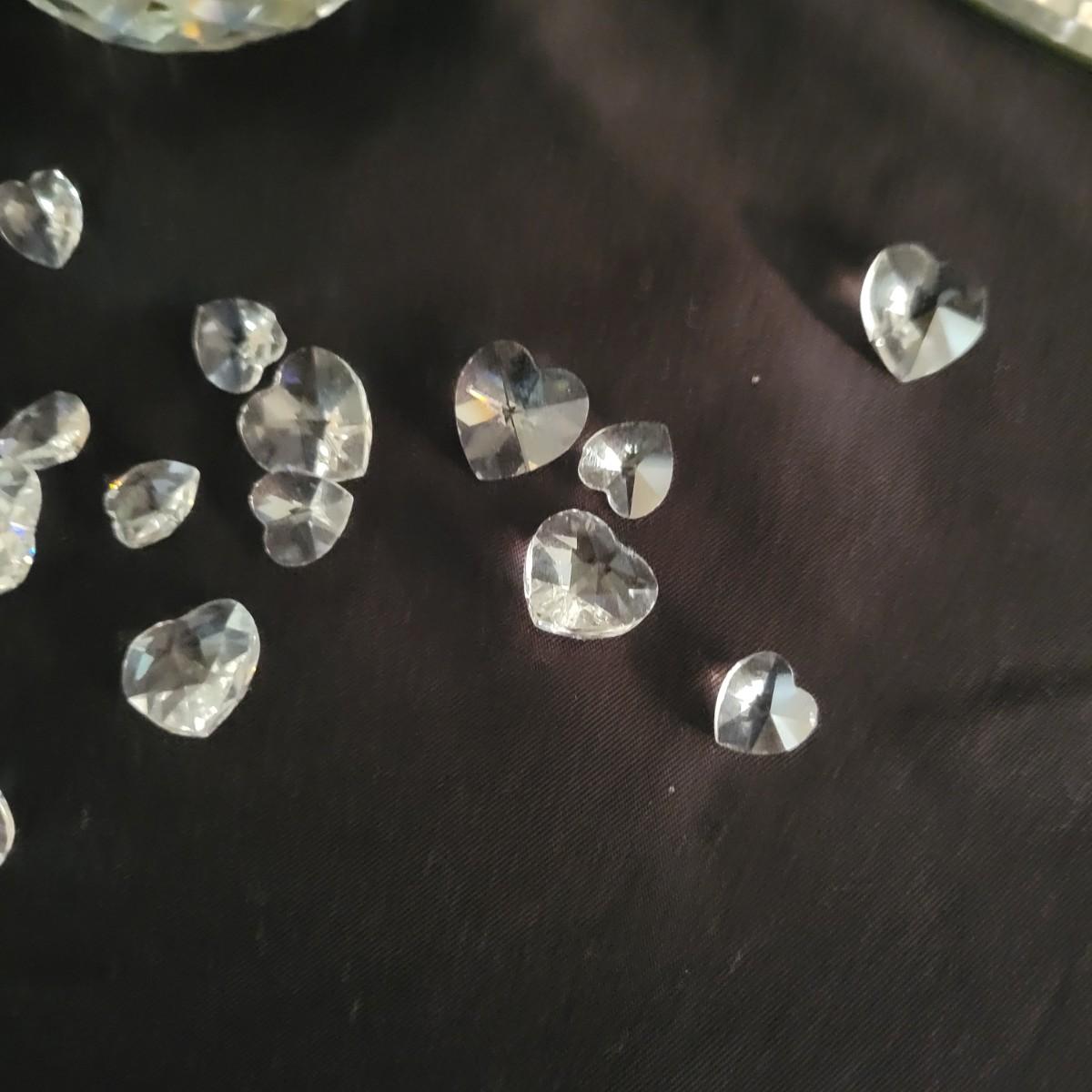 A collection of crystal decor items with no notable damage. Included are two Swarovski leaded crystal candleholders with mirror bases that measure approximately 5.5"D x 3"H. Lot also includes over 20 small crystal hearts, a leaded crystal mobile, a crystal pineapple with gold colored leaves and a glass cross. Shipping available. Shipping can be costly. We suggest contacting our preferred local shipping provider, Postage Express, with dimensions and getting an estimate before bidding: (828) 670-5501 or postageexpress@yahoo.com.