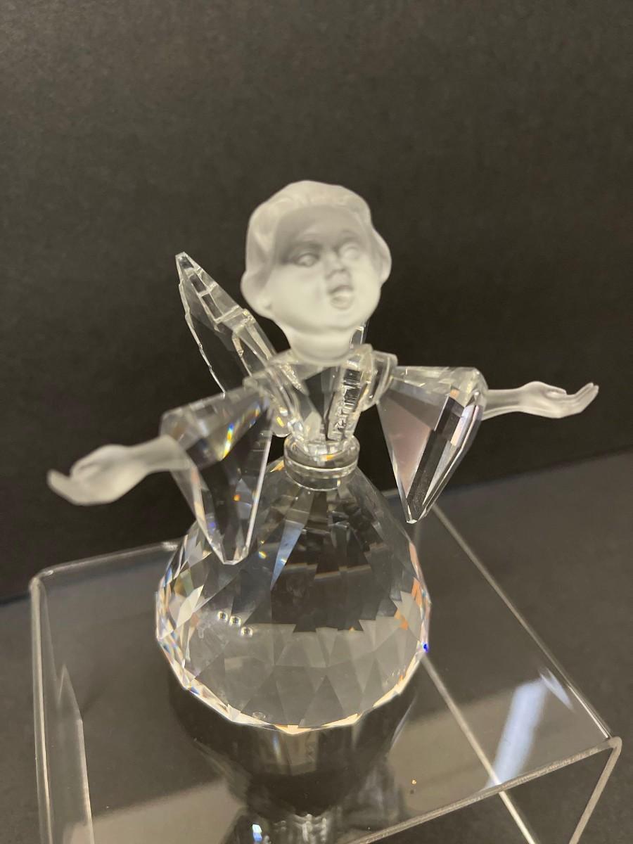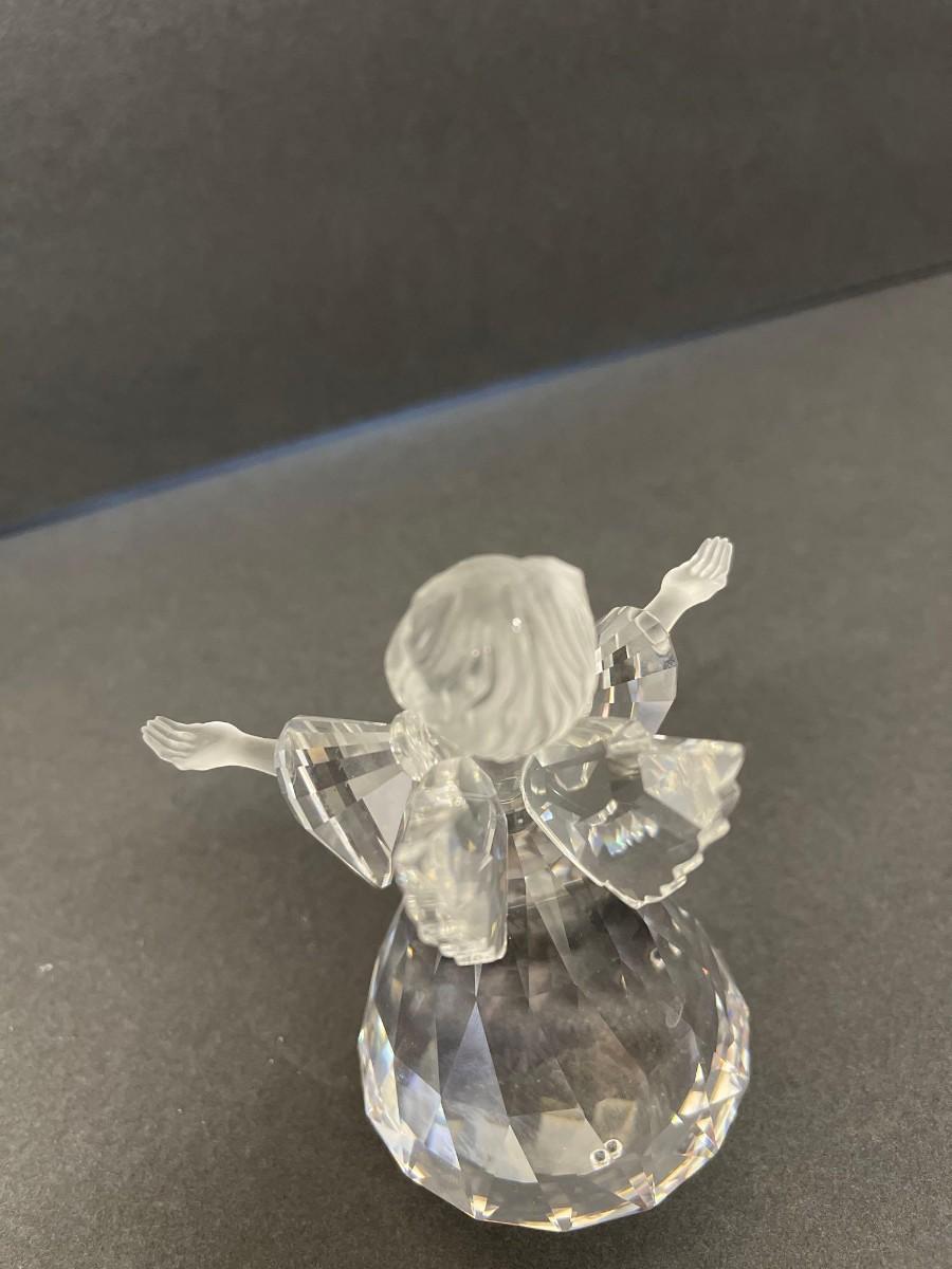 <p>Swarovski crystal cheerful times angel figurine. Measures 3 3/4 inches high by 2 1/2 inches wide. Excellent condition does not include box.</p>