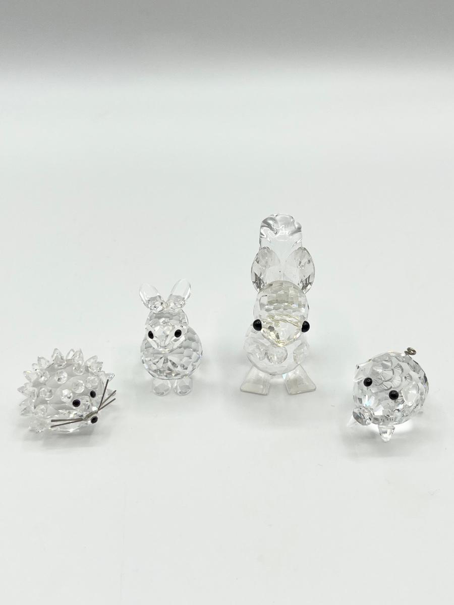 All have Swarovski etching ~ (1) Hedgehog 3/4” H ~ (1) Bunny 1 1/8” H ~ (1) Squirrel 1 3/4” H ~ (1) Pig 5/8”H