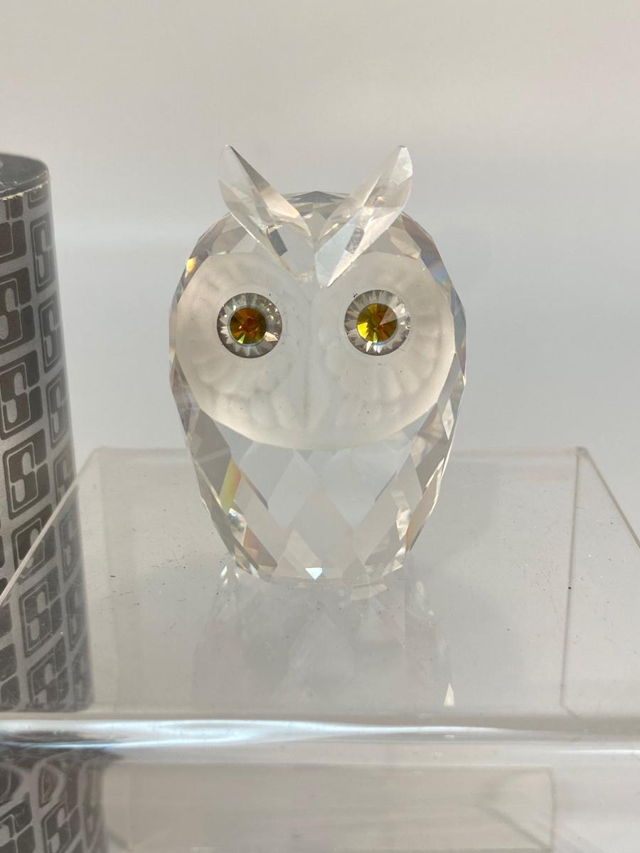 Swarovski Crystal Gold Eye Owl Figurine with Box. In good condition. About 2" size.