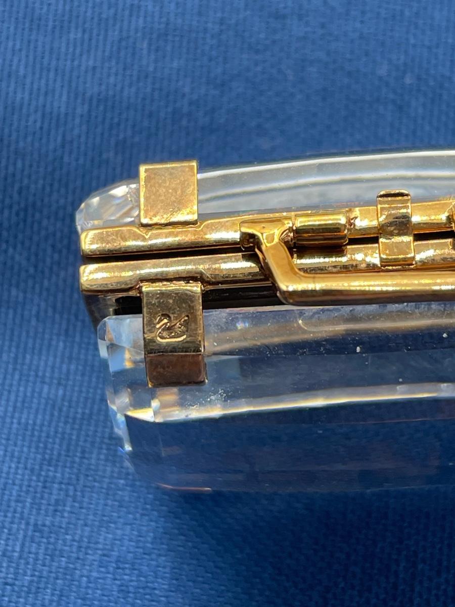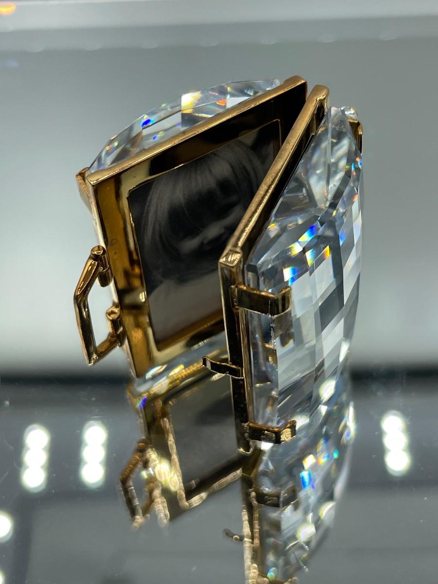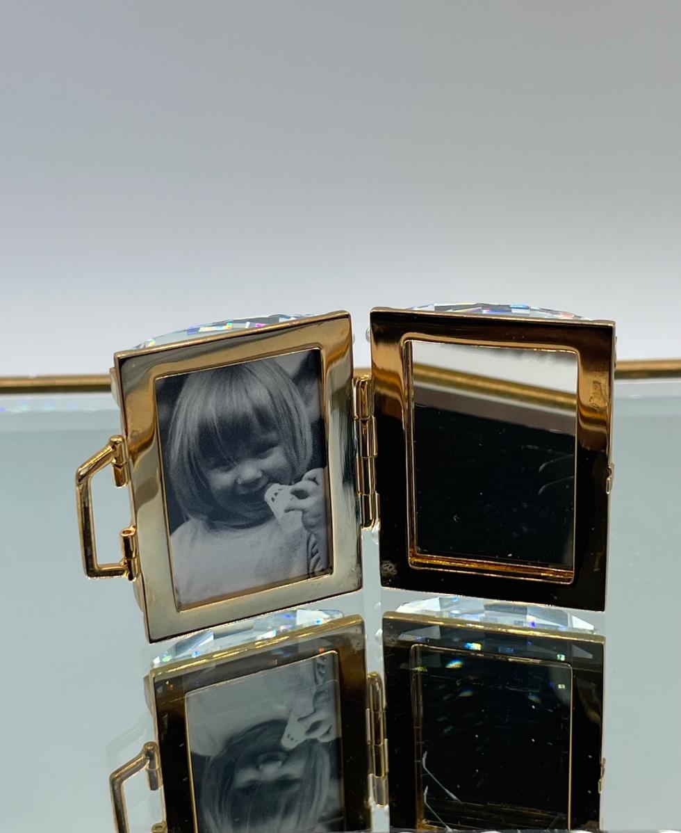 Retired piece in excellent condition. Opens to show mirror and frame for your photo. Miniature 1 1/2” size with signature swan logo.