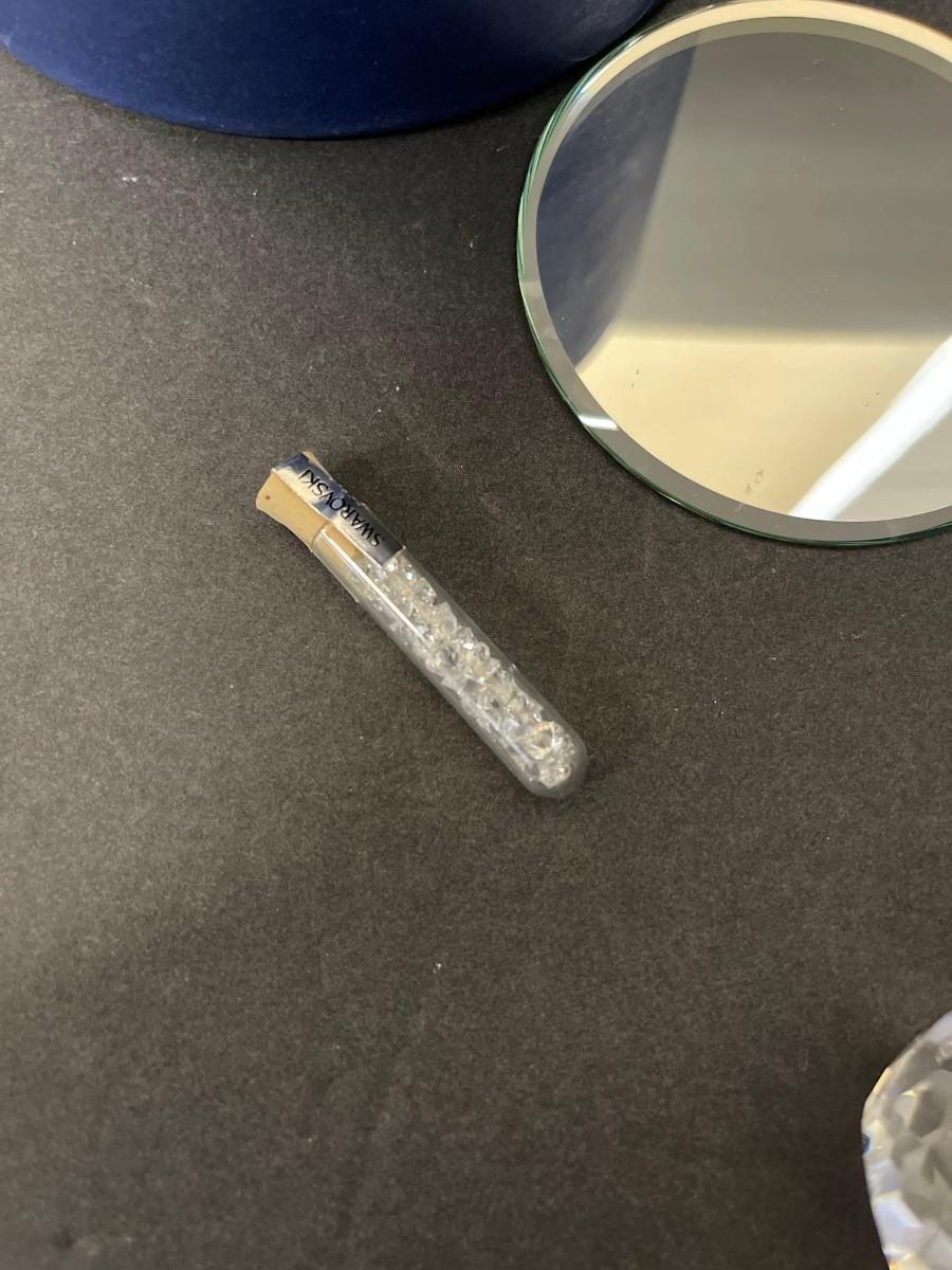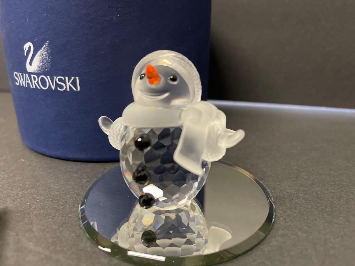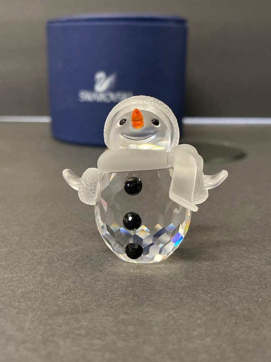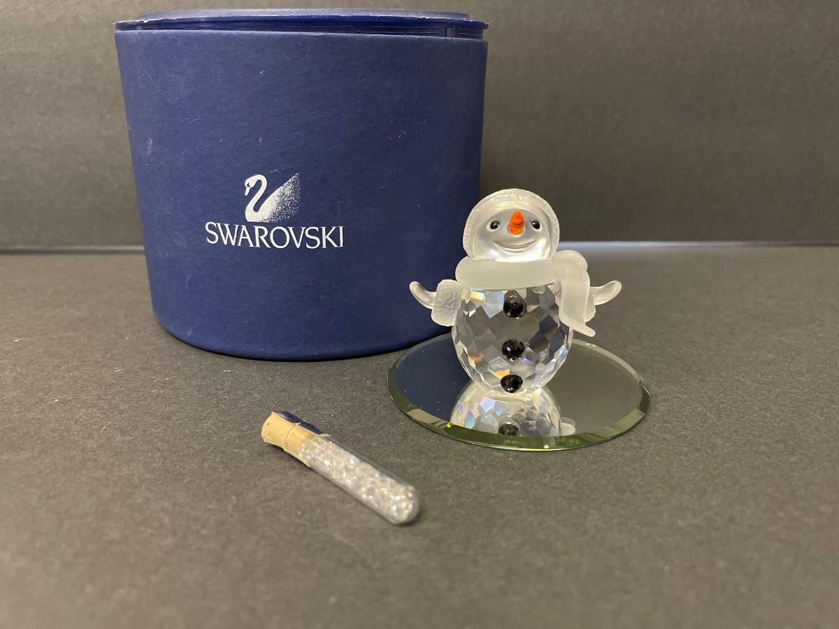 Swarovski crystal snowman with original box and small tube of crystals. Excellent condition snowman is 2 1/4 inches high.